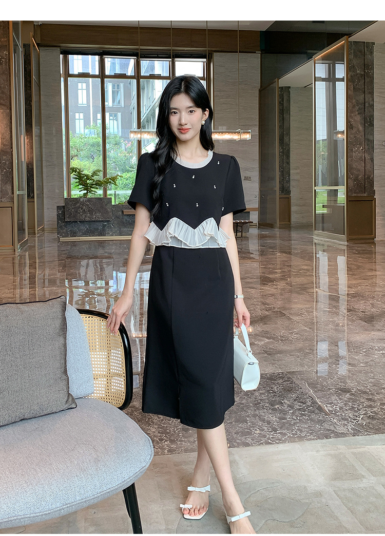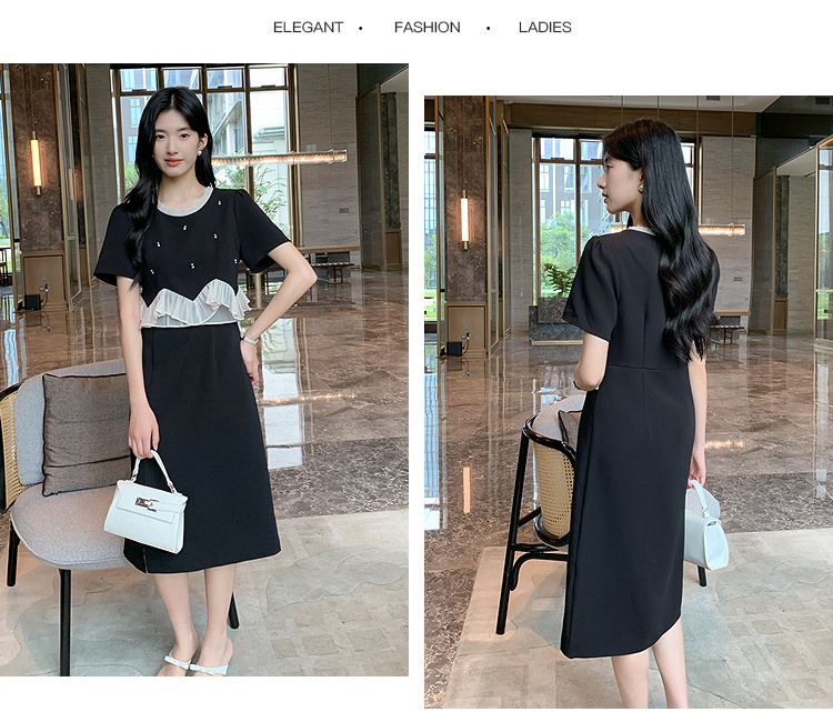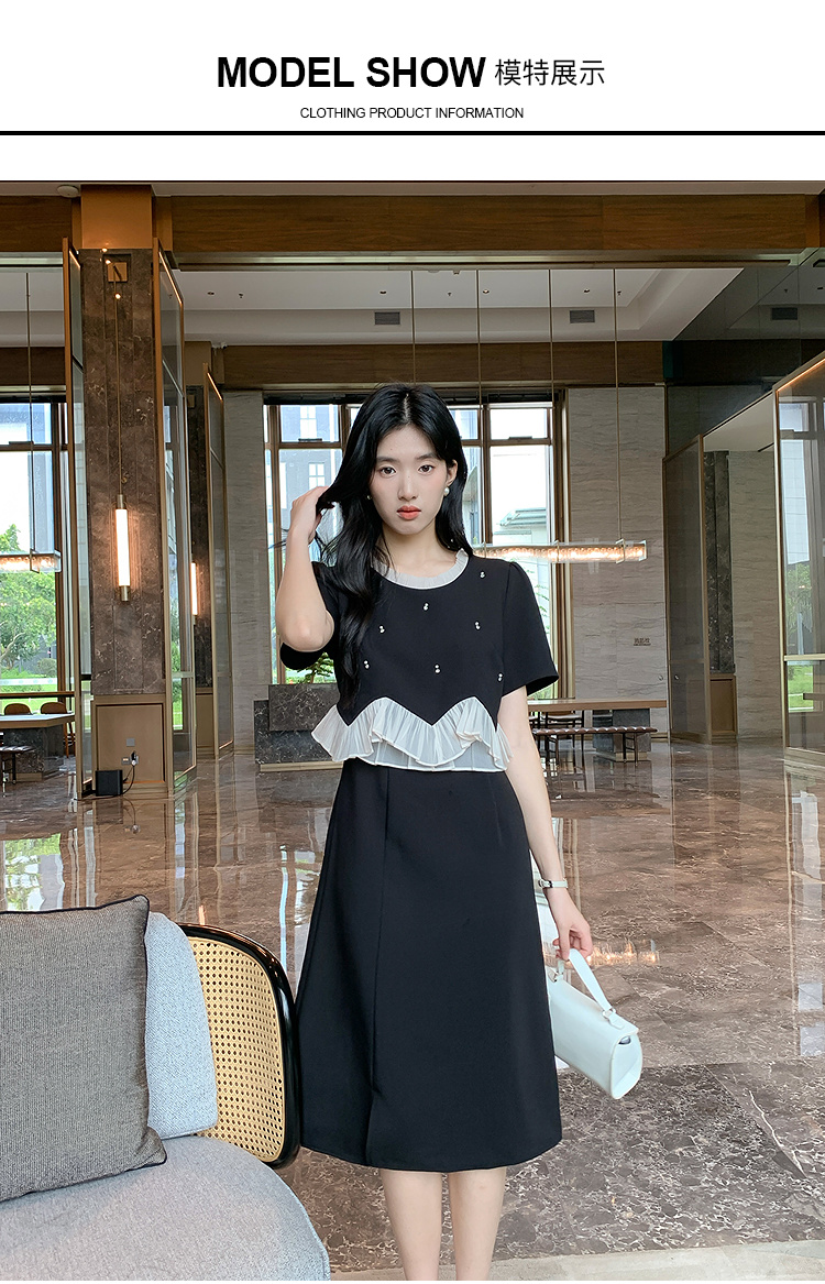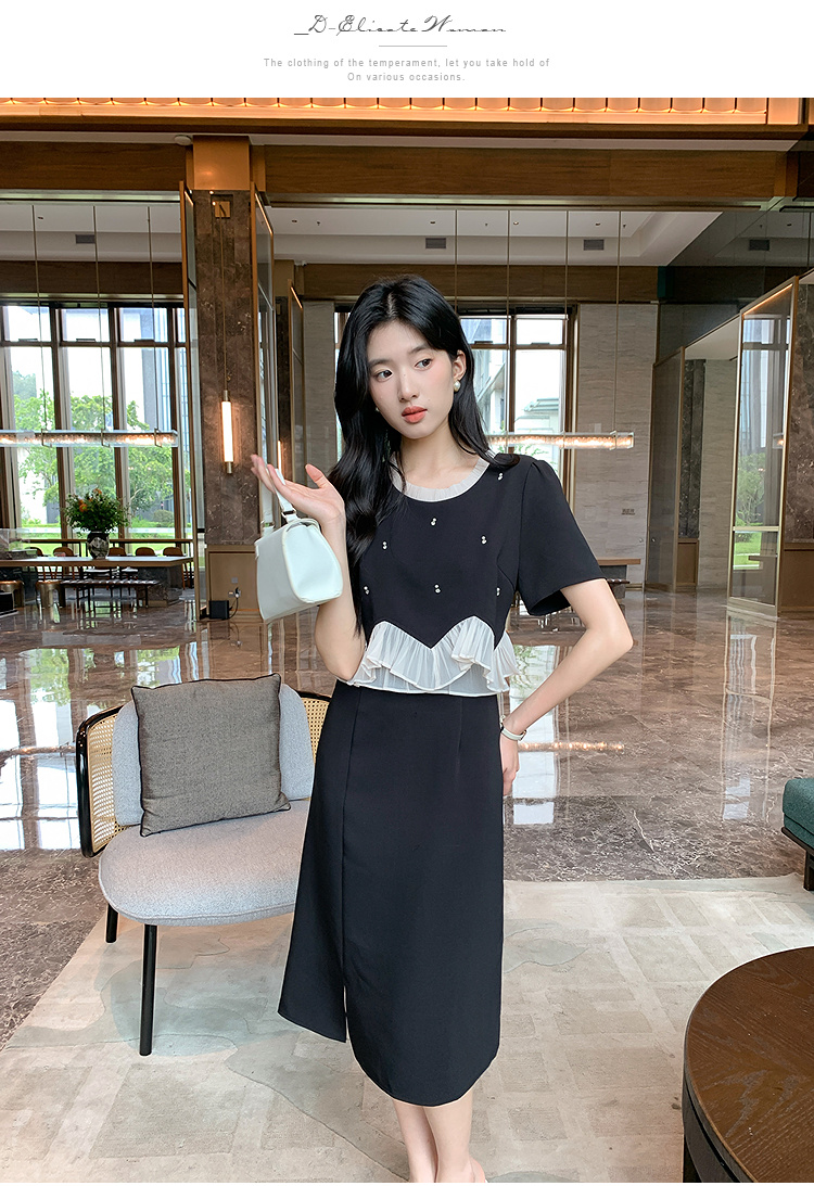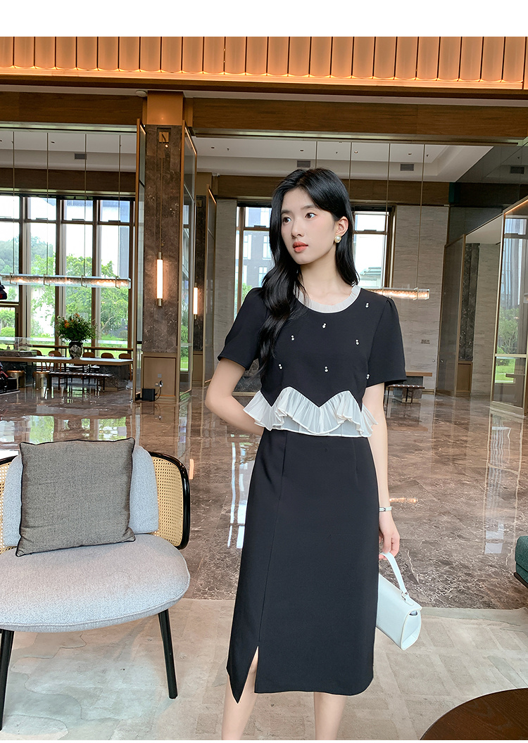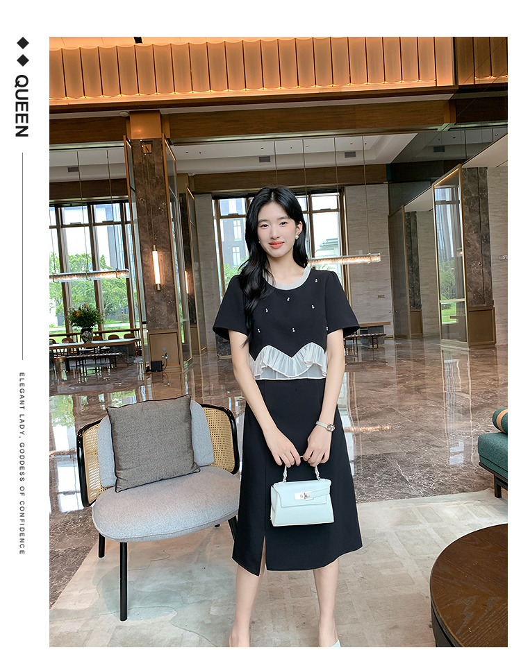 奢姿大码女装2026夏季法式赫本风荷叶边气质连衣裙胖妹妹开叉裙子9952802826