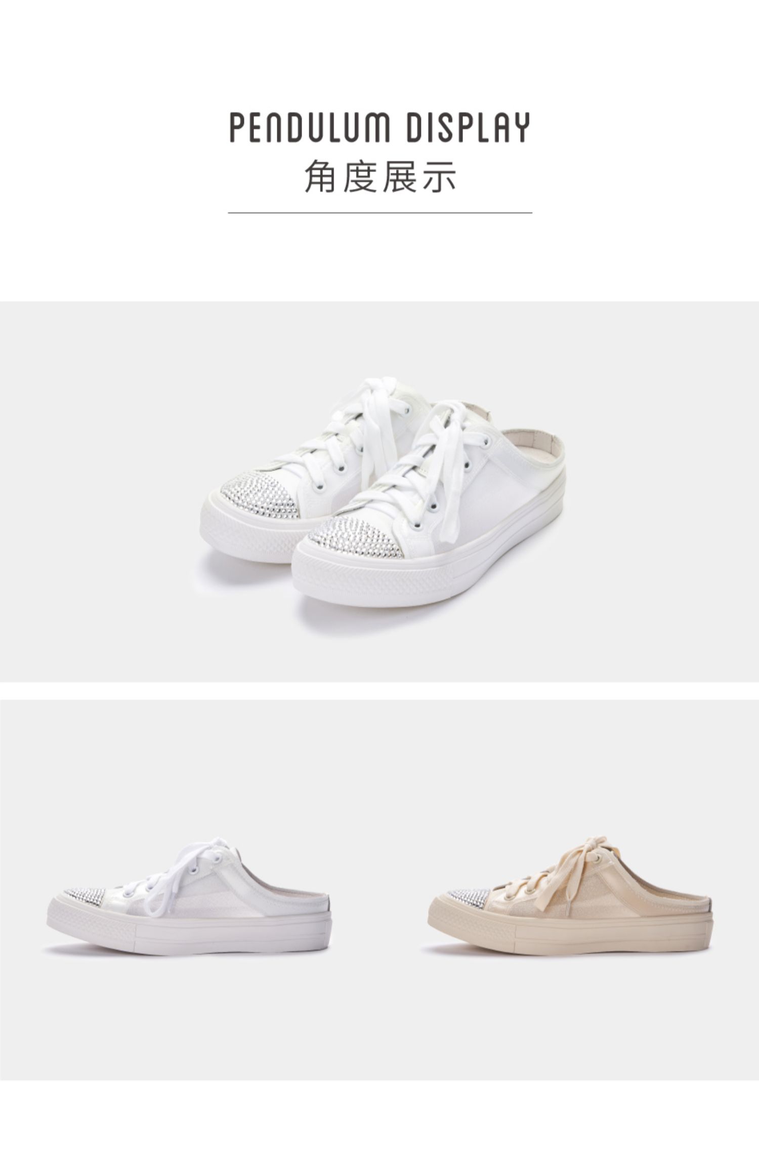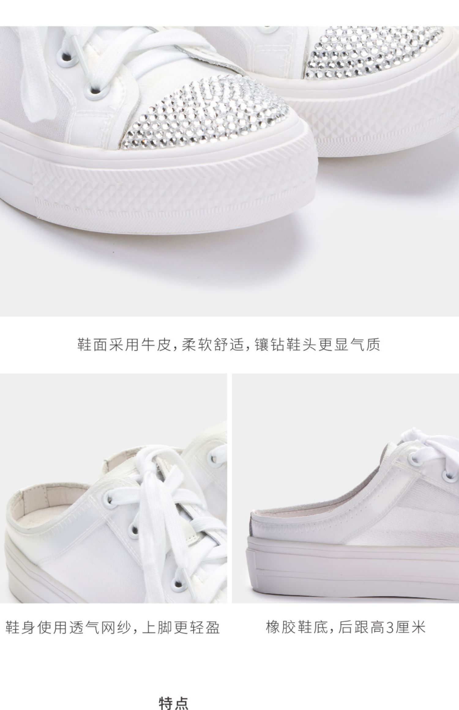 nekomomo春夏季商场同款牛皮网面透气镶钻时尚平底中跟穆勒拖鞋女