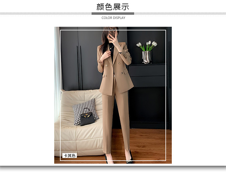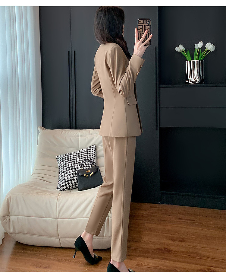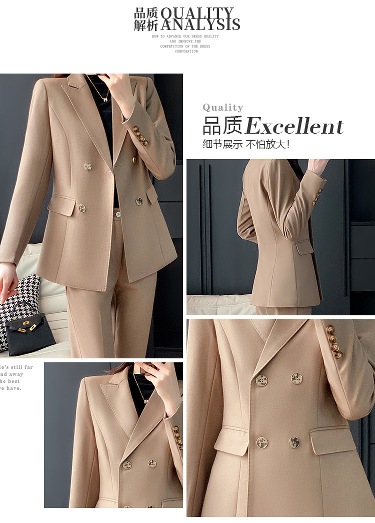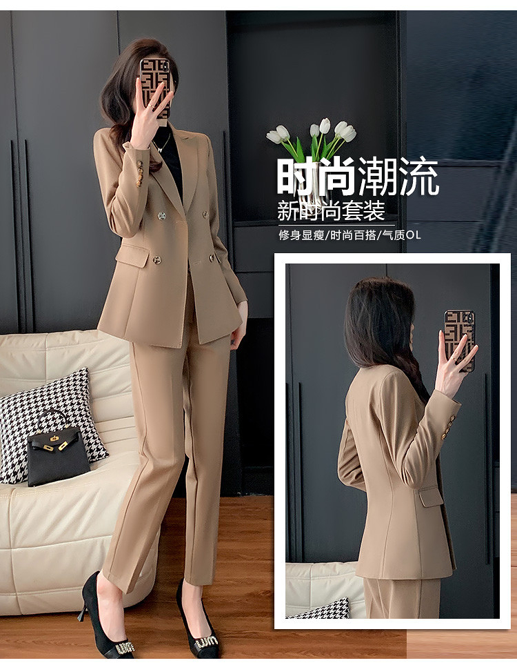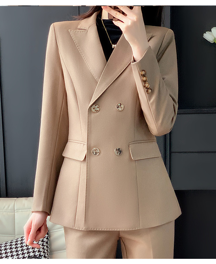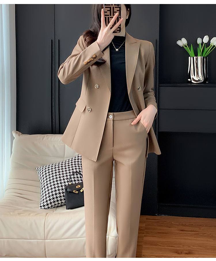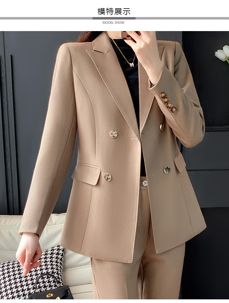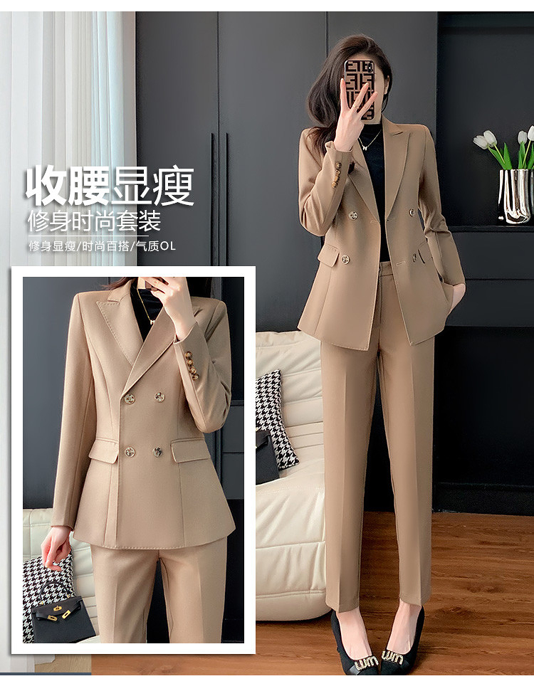 奢姿女装2025新款气质翻领职业套装女士时尚双排扣西装裤子两件套25090916