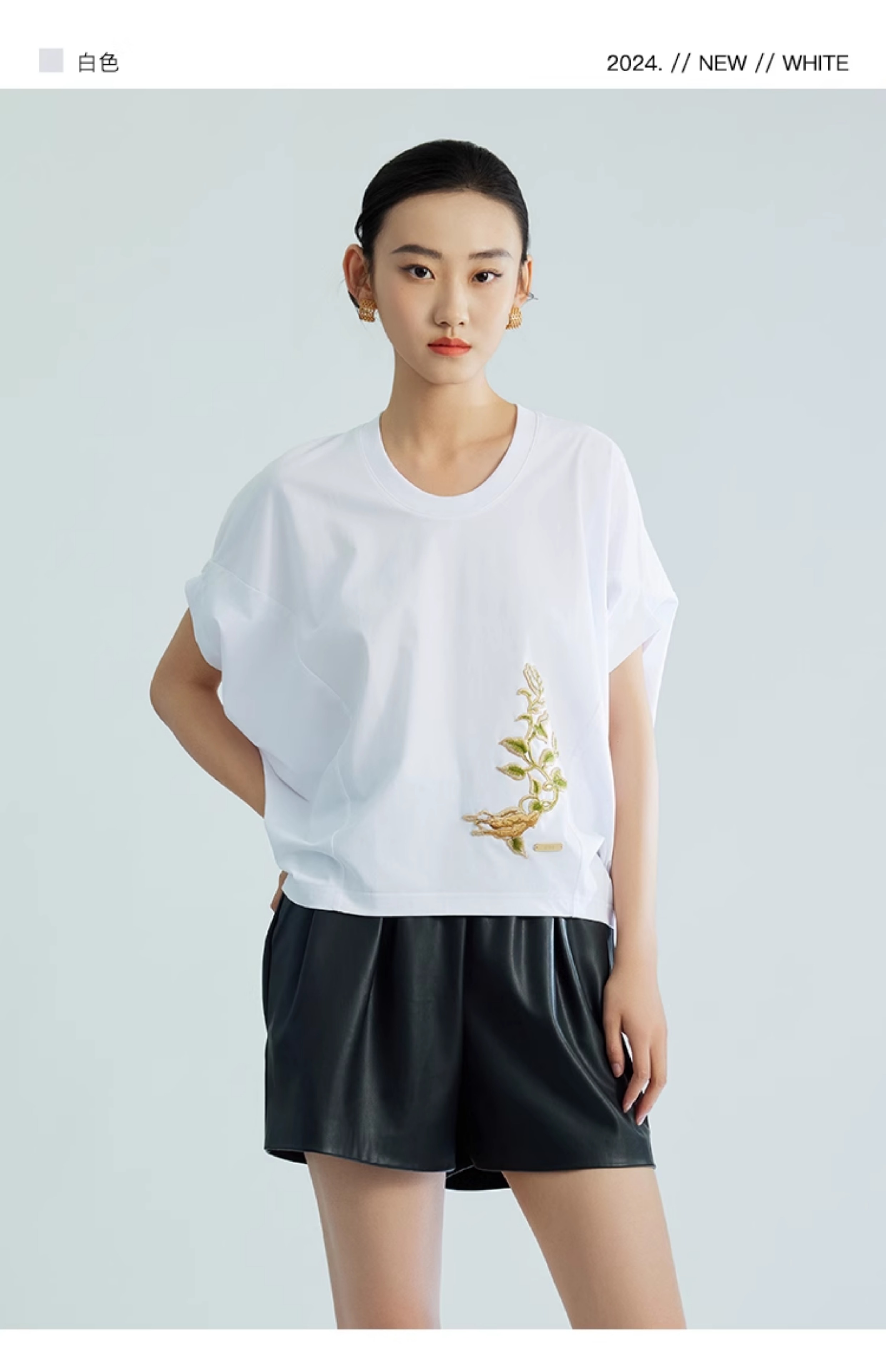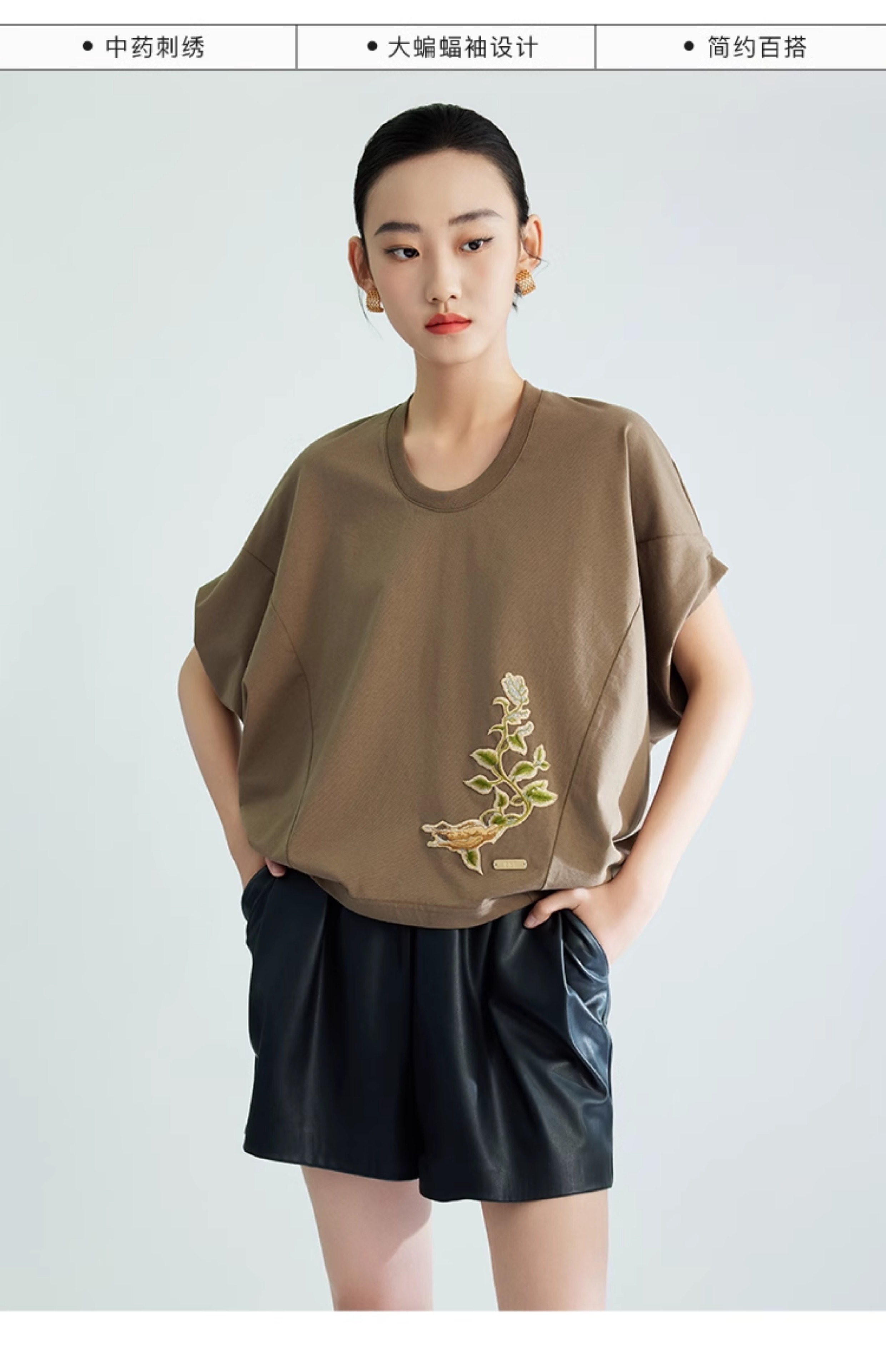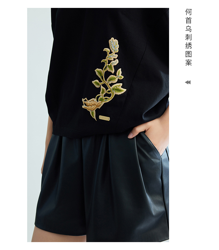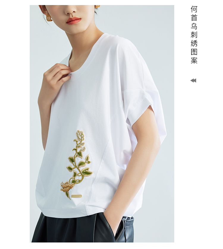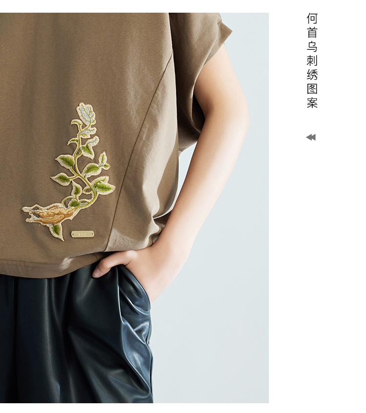 郭培成衣品牌【“药”爱自己】何首乌刺绣大蝙蝠袖T恤