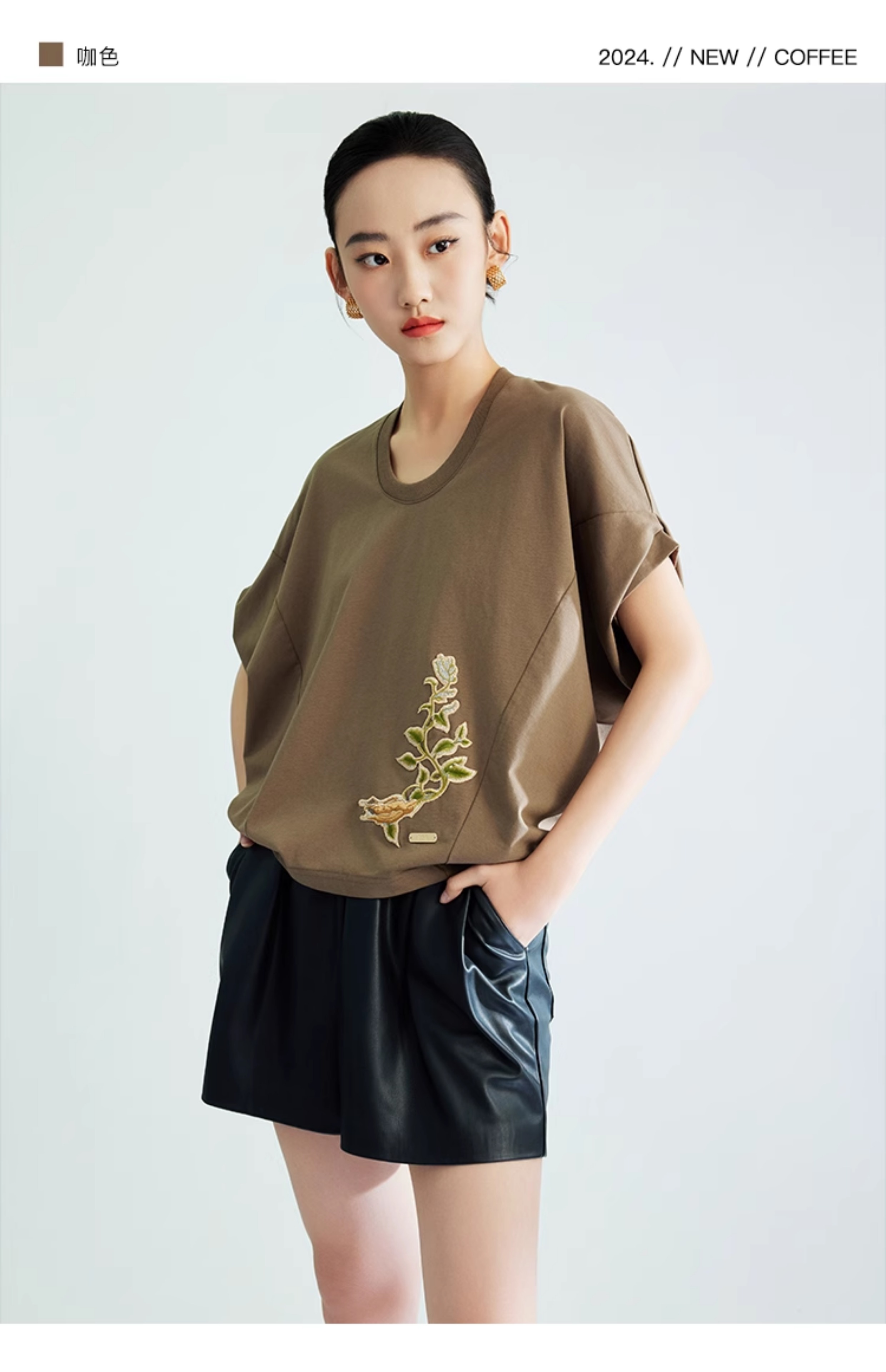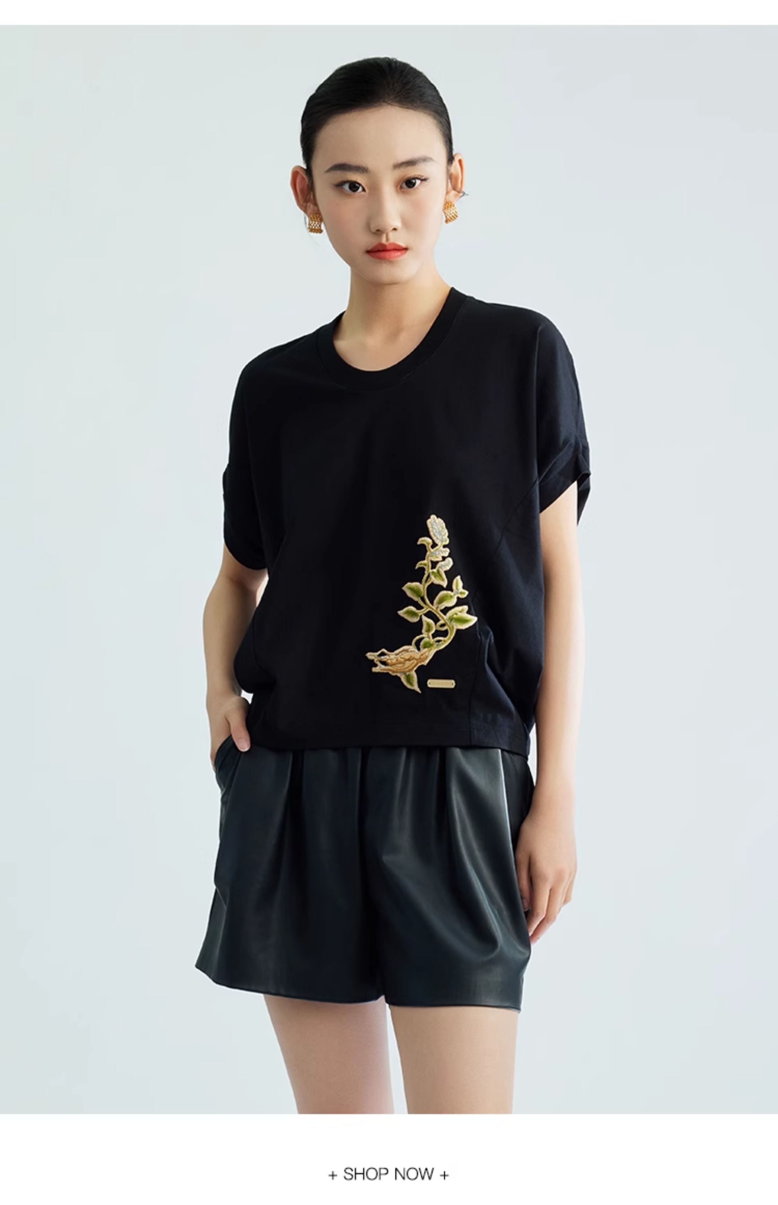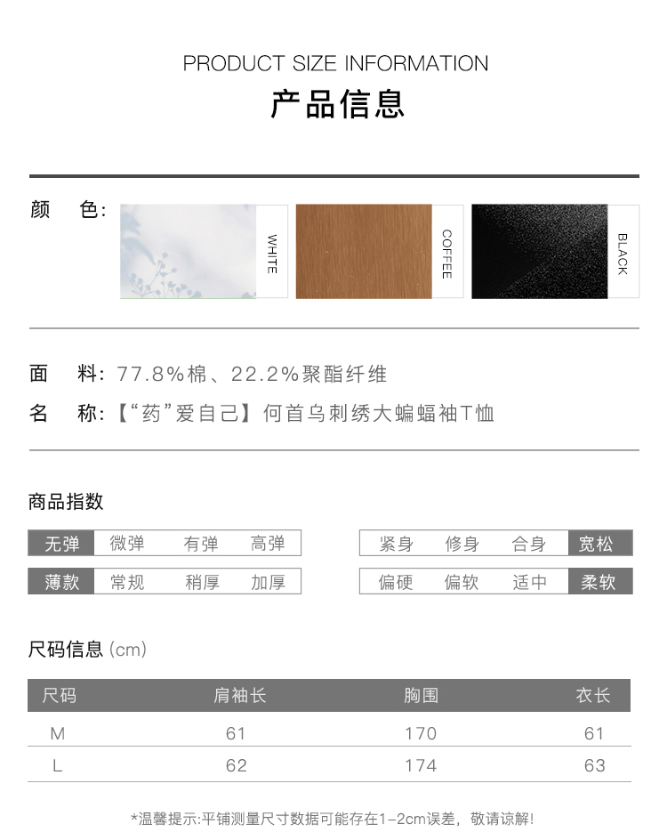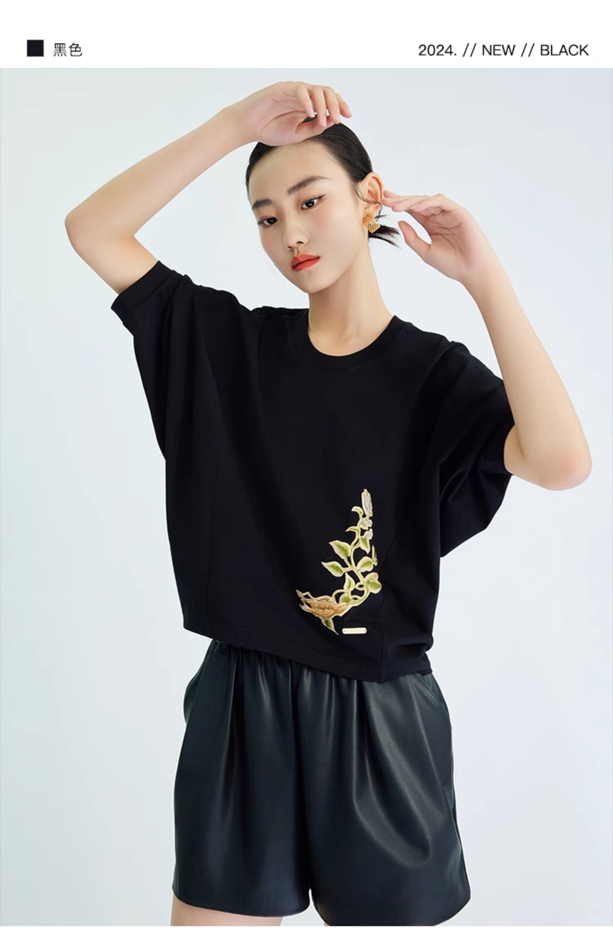 郭培成衣品牌【“药”爱自己】何首乌刺绣大蝙蝠袖T恤