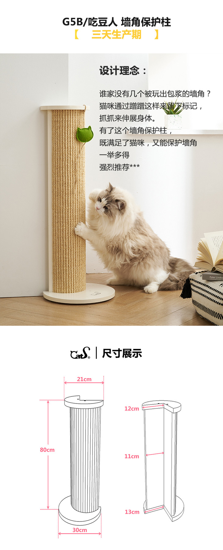 CatS猫家具吃豆人墙角保护 剑麻转角蹭猫抓柱猫抓板磨爪器G5B包邮