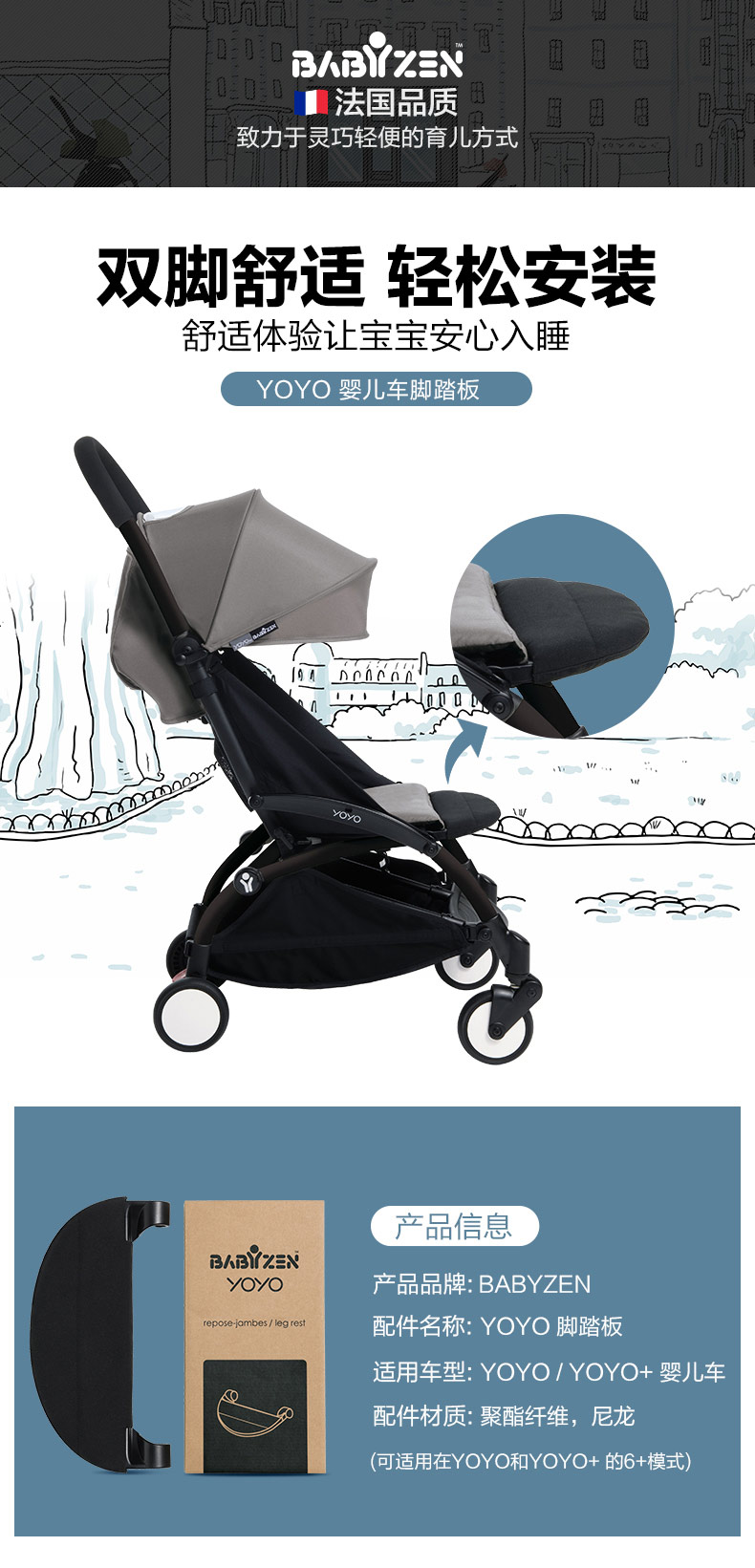 法国Babyzen YoYo婴儿推车 延长脚托 配件