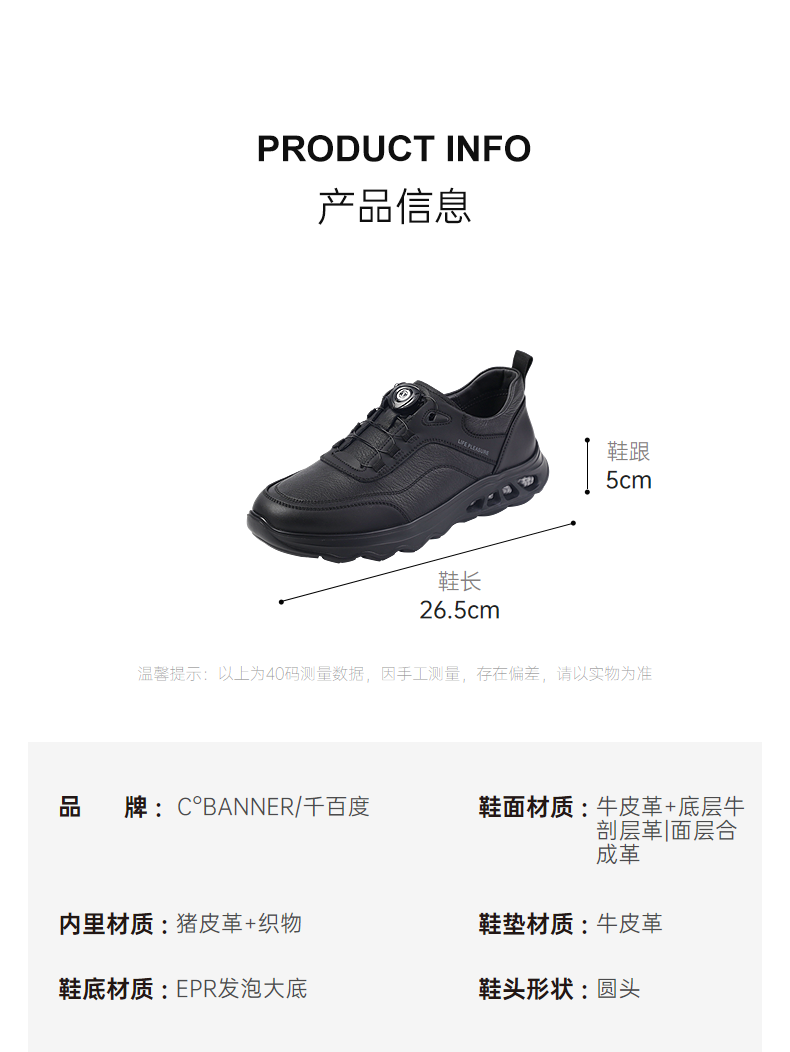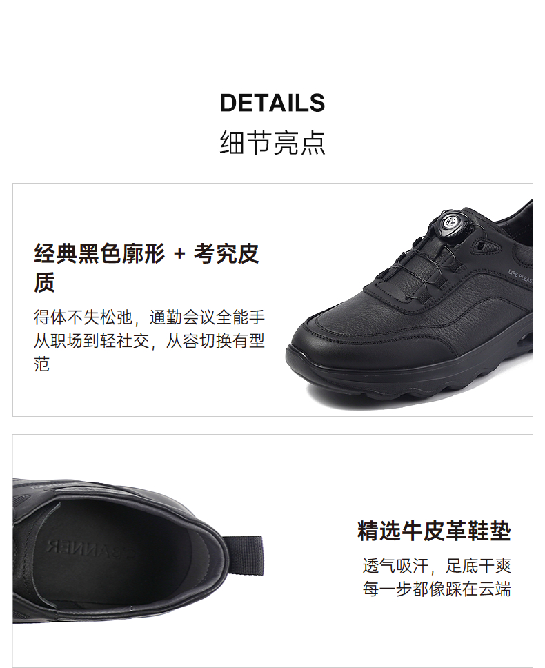 千百度秋季商务休闲鞋牛皮革脚垫健步鞋男鞋A25411131