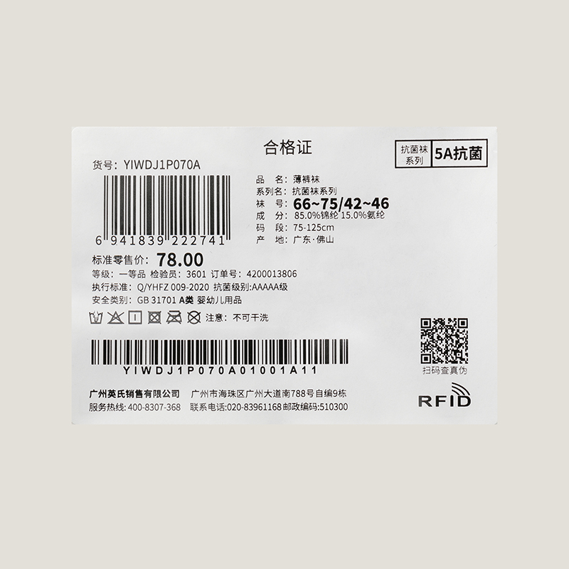 英氏婴儿薄款连裤袜春夏新款袜裤5A抑菌女童打底裤YIWDJ1P070A