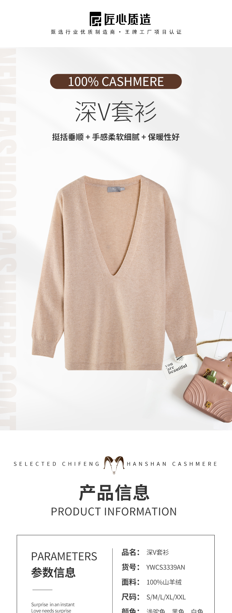 东黎 • 山羊绒女士秋冬深V套衫 3339