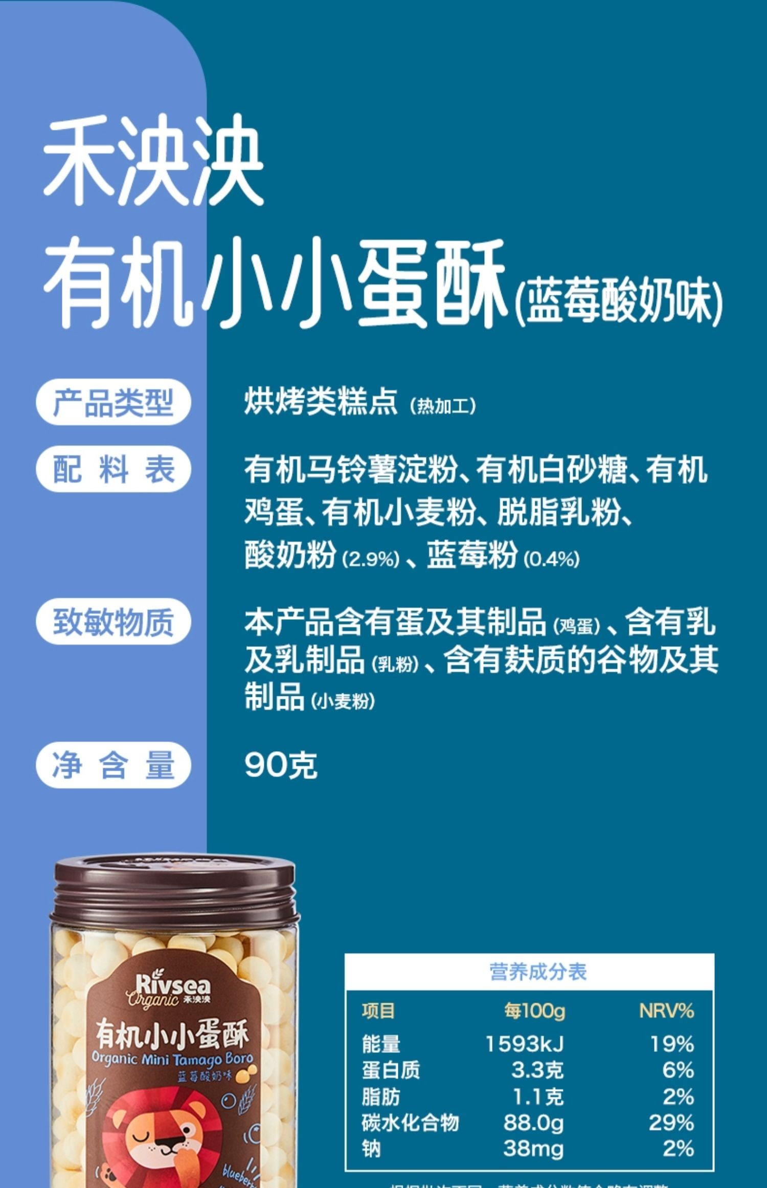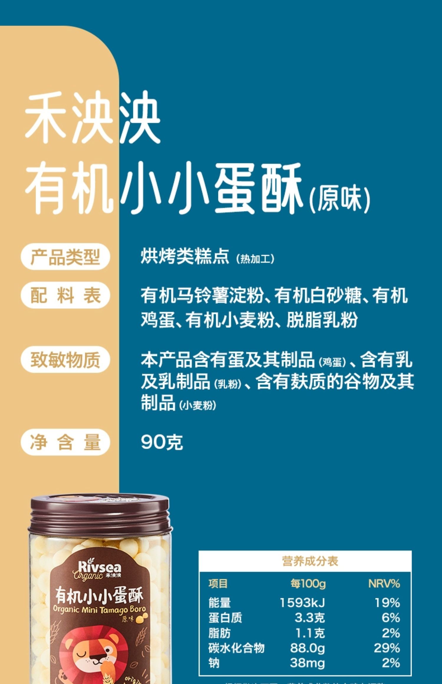 1岁+ 禾泱泱 3种口味有机小小蛋酥 儿童饼干宝宝零食辅食90g 1岁+