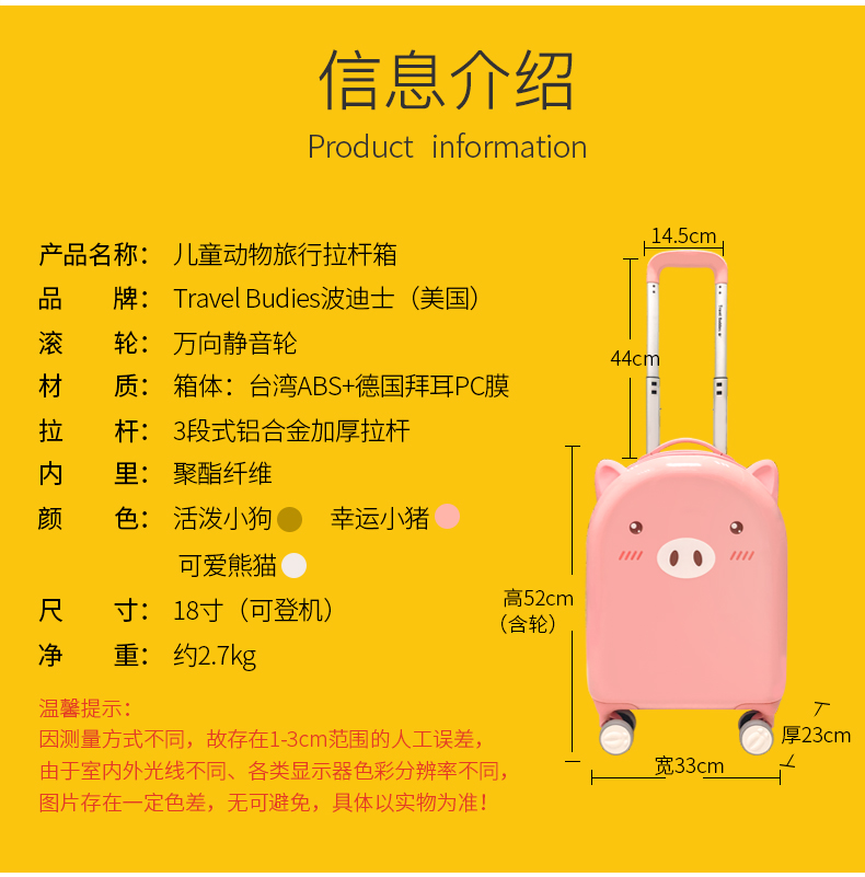 美国travel buddies儿童拉杆箱宝宝可坐可骑登机万向轮静音行李箱18寸