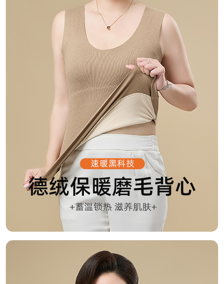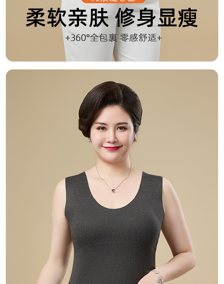 【中老年秋冬新款保暖背心】妈妈加绒加厚德绒发热 打底吊带保暖内衣