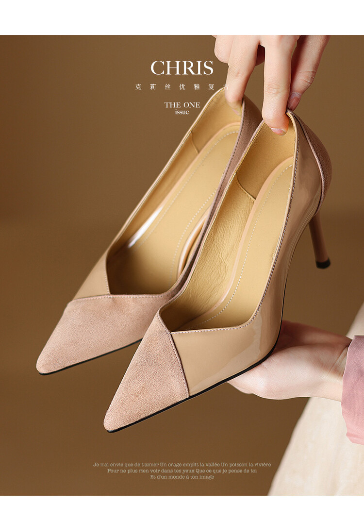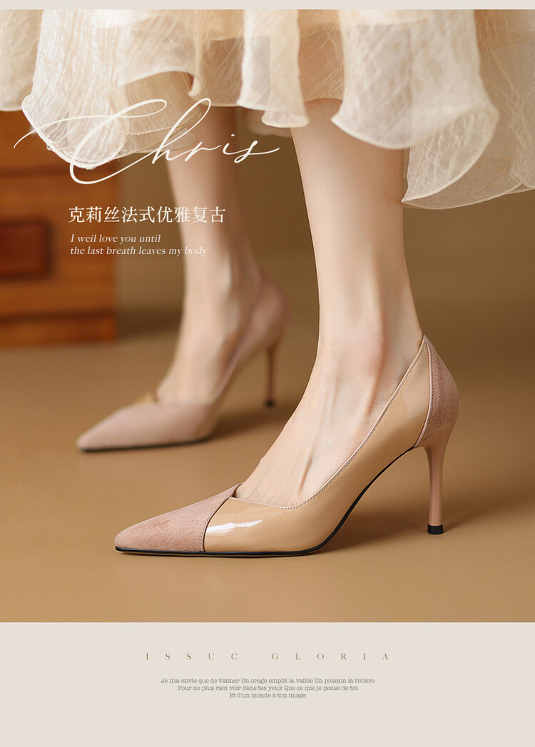 【预售5天】法式时尚尖头细跟拼色浅口高跟鞋秋季宴会风配裙子优雅洋气单鞋女HGXY&HG205