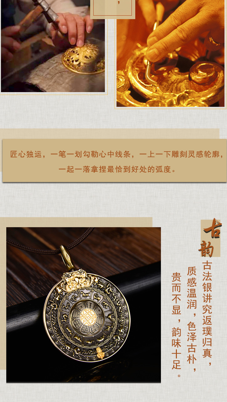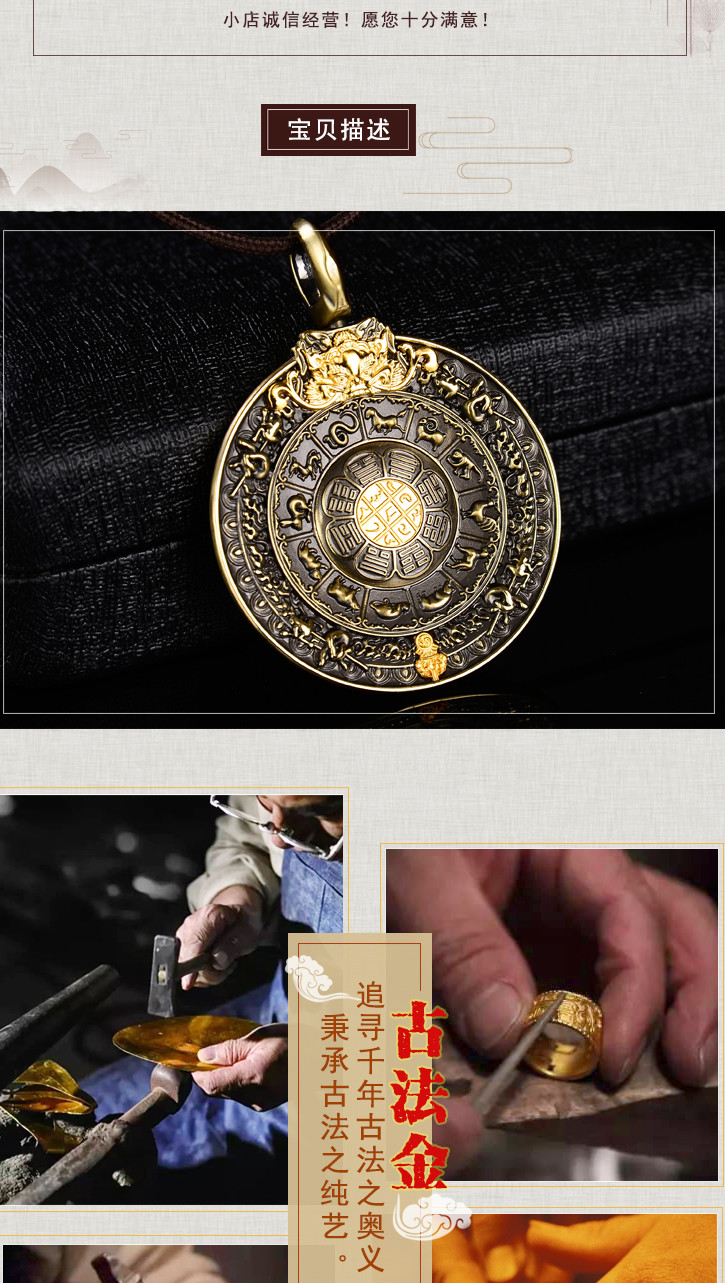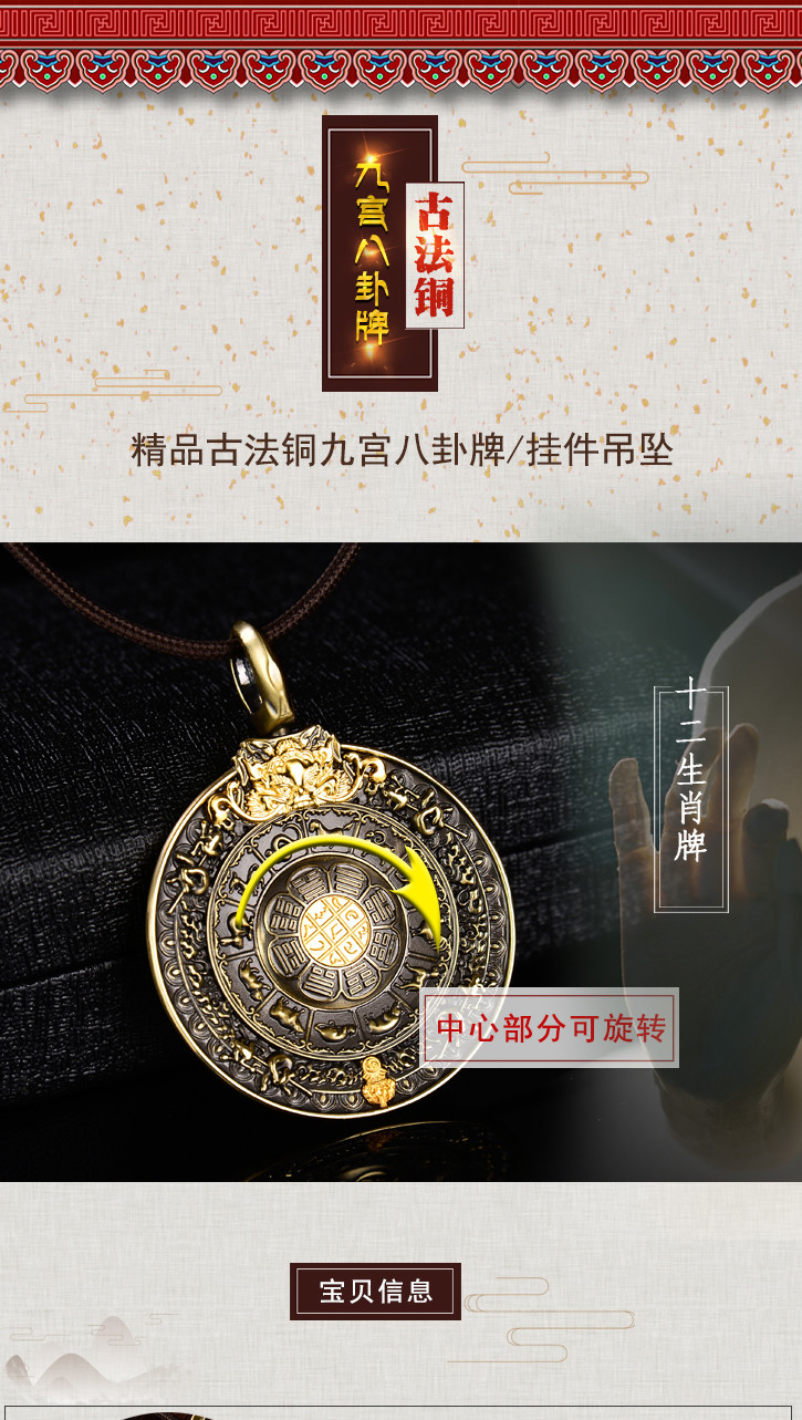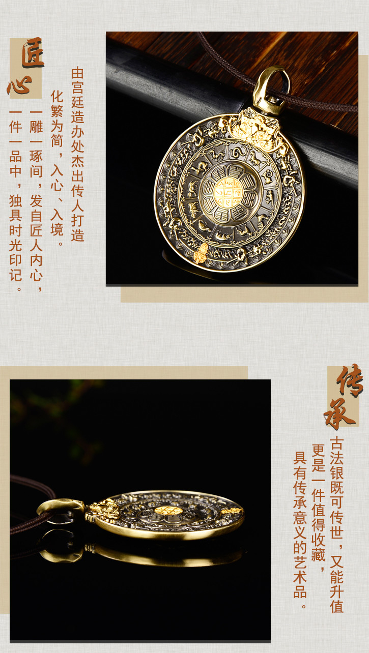 天语龙吟精品古法铜文殊九宫八卦牌吊坠挂件3#