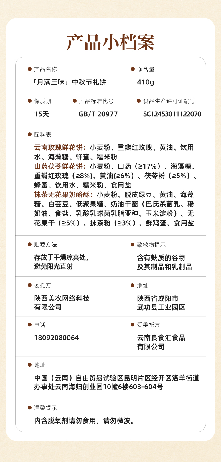 【顺丰】西域美农 「月满三味」中秋节礼饼 410g/盒