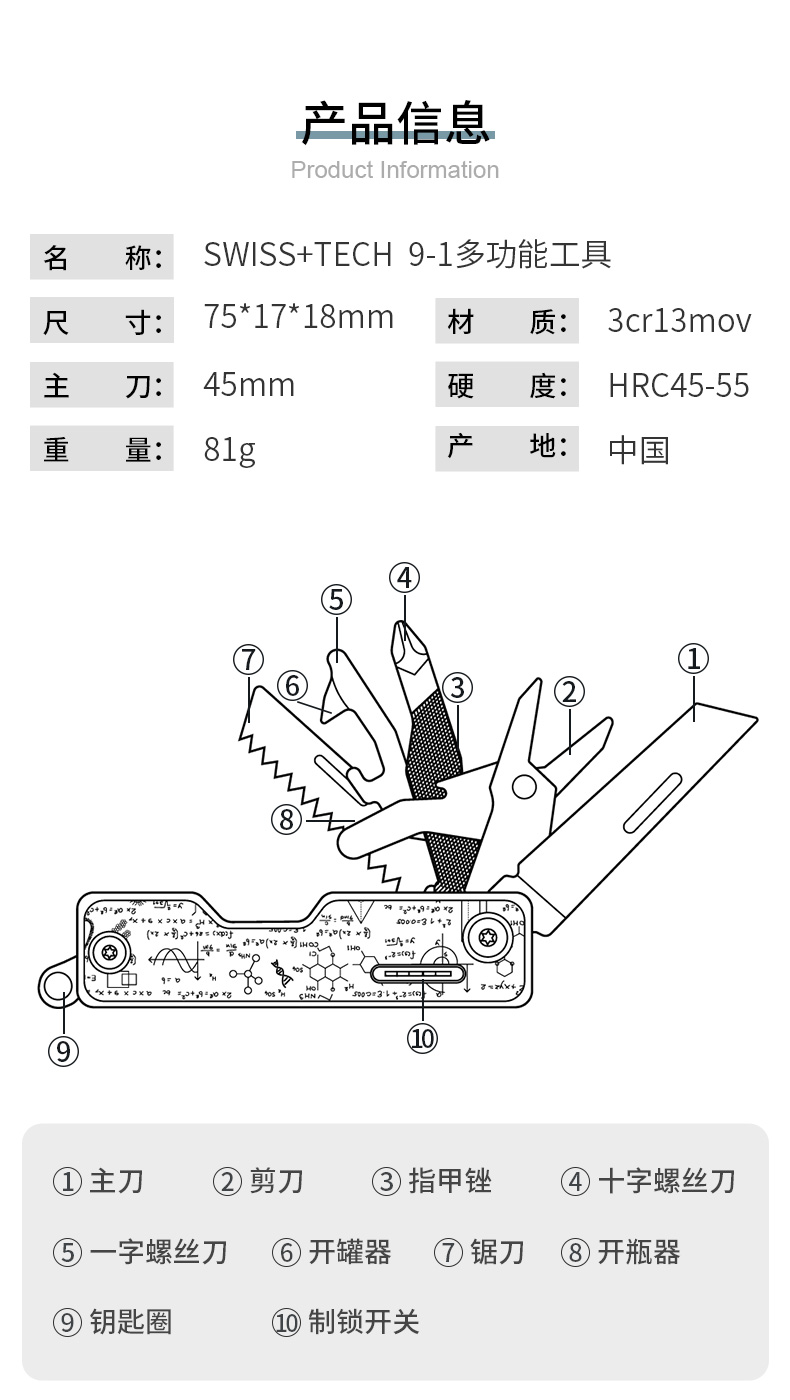 瑞士科技SwissTech户外多功能工具刀剪刀便携折叠小刀edc组合工具