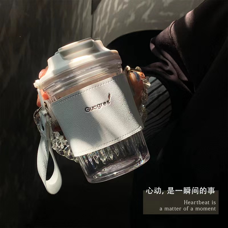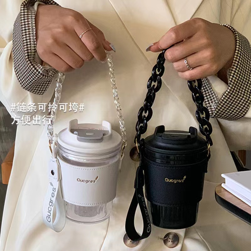 (清仓现货)【社群供A】创意带杯套情侣杯子高颜值随行咖啡杯户外便携塑料杯