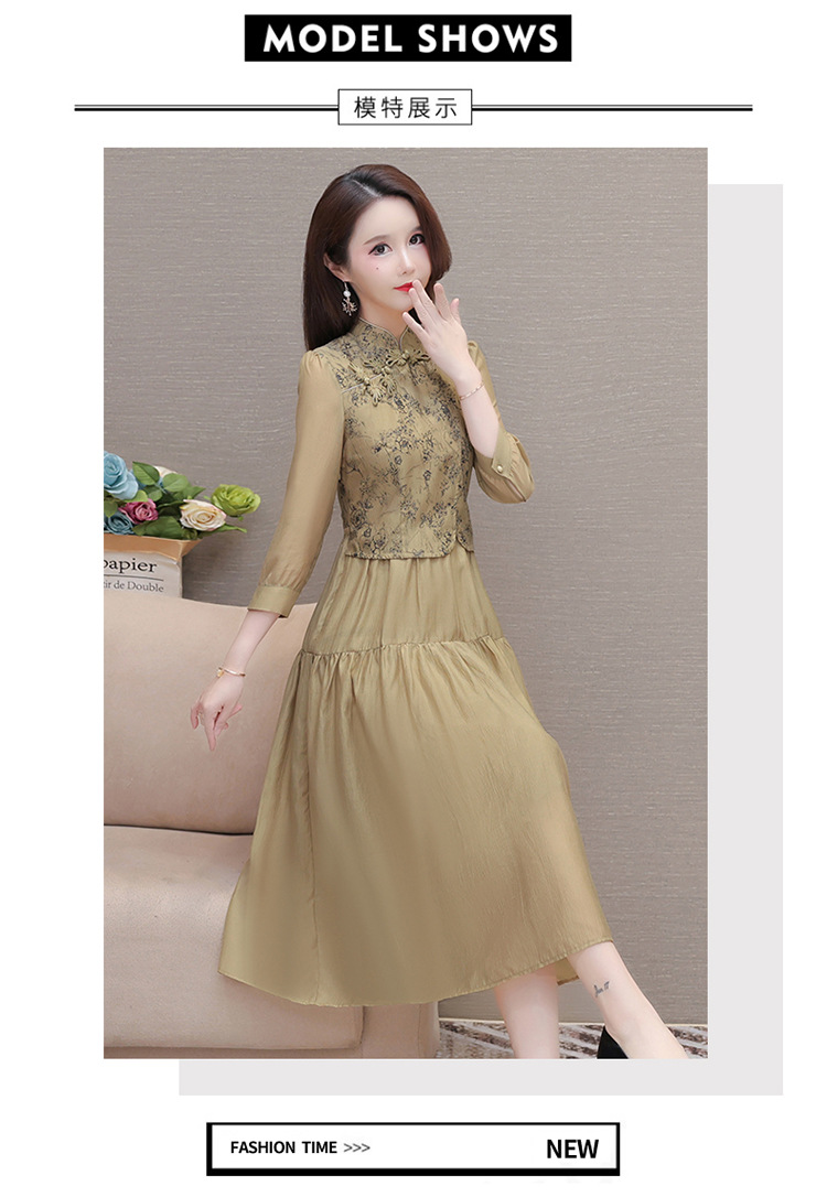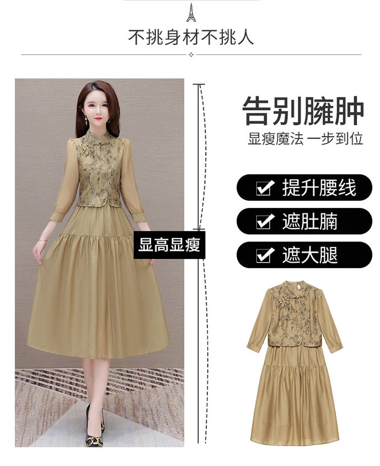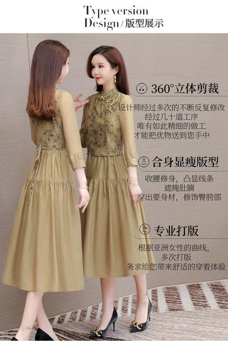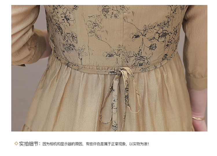 印花假两件大摆长裙,新中式国风优雅连衣裙QYM-XQD-53A2405-L