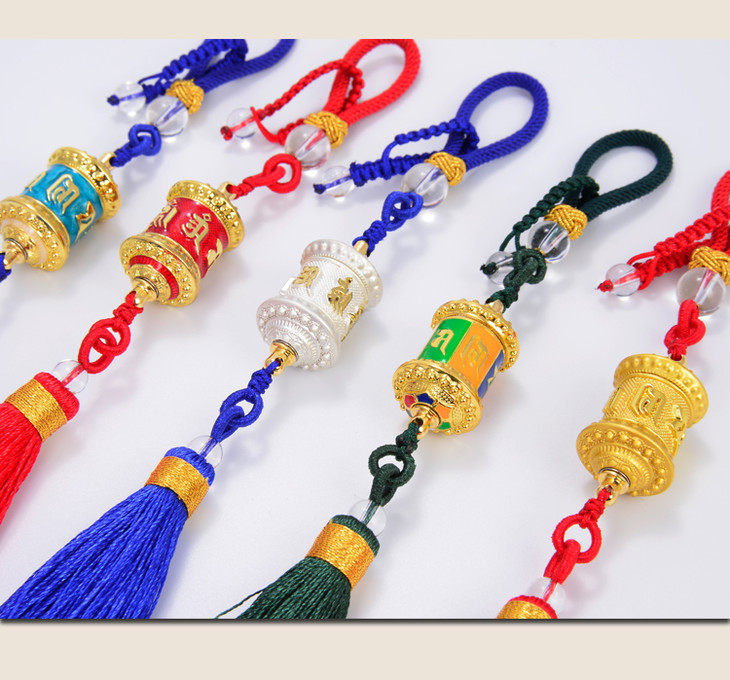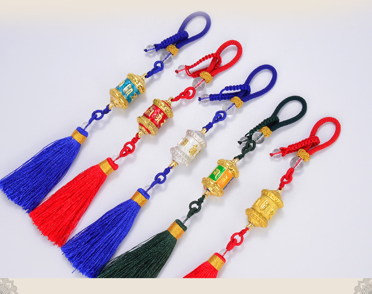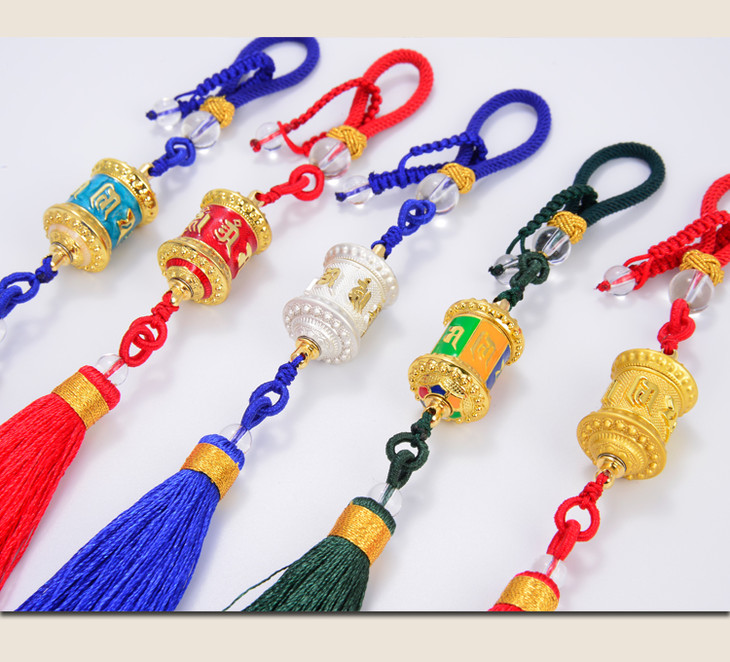 德田合金指捻转经轮流苏挂件观音心咒转经筒车挂包挂吊坠