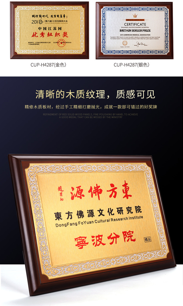 木质奖牌定制定做连心纹铜牌金属木托授权牌荣誉证书加盟代理牌匾