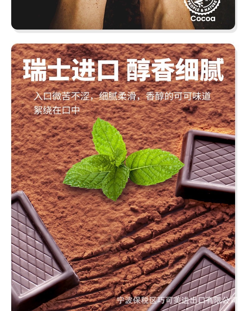 瑞士爱普诗多翡诺74%可可黑巧克力215g 美味解馋不囤肉 优质可可 045238