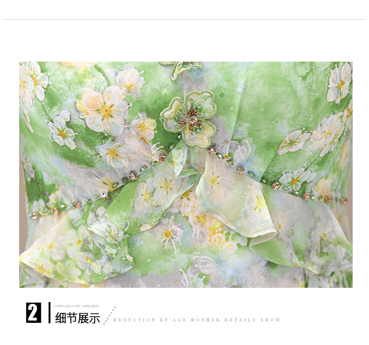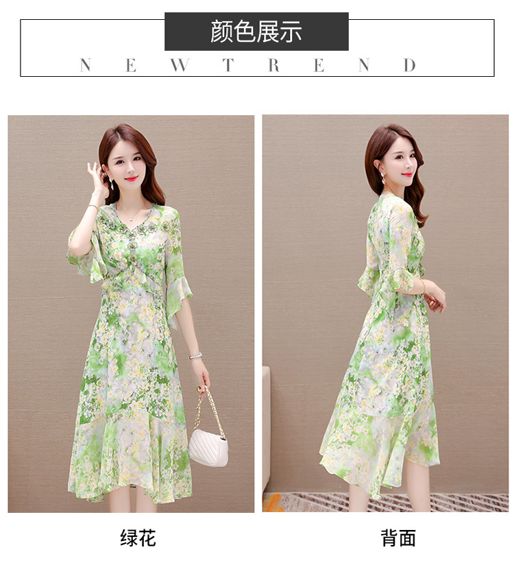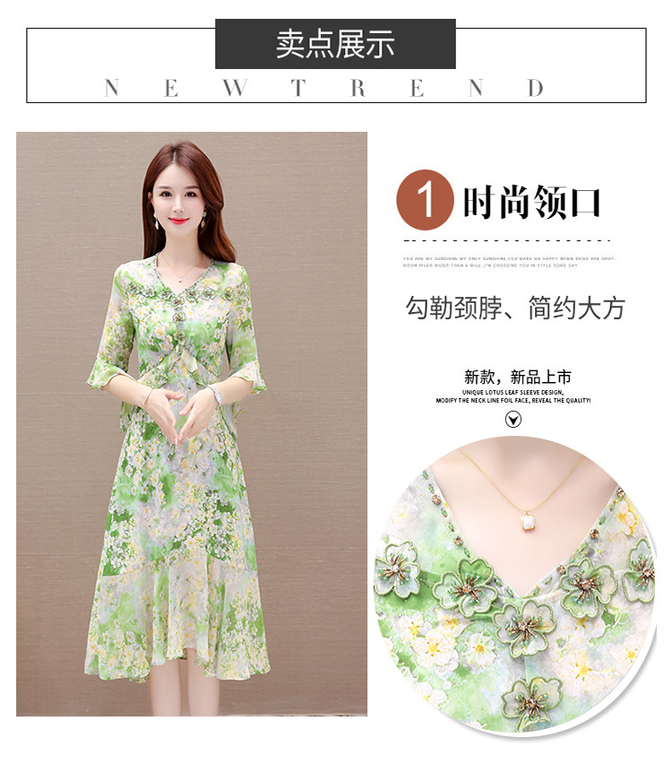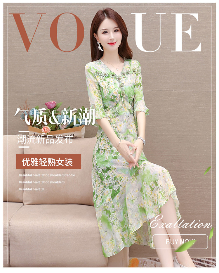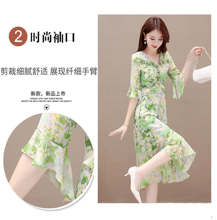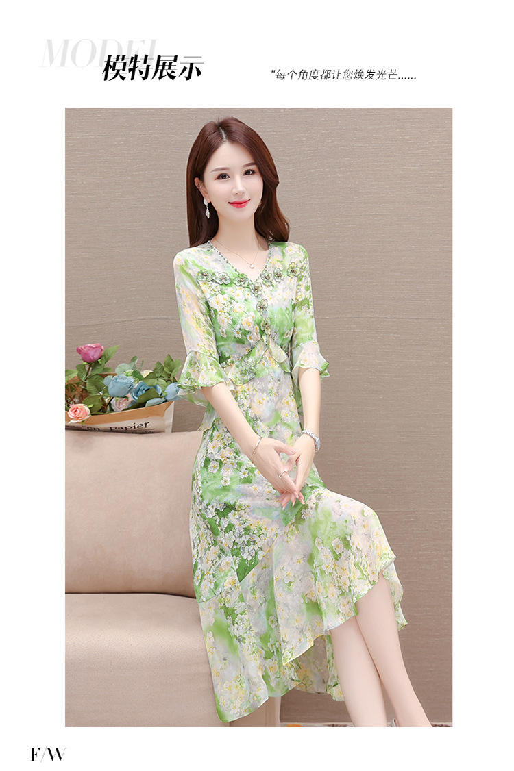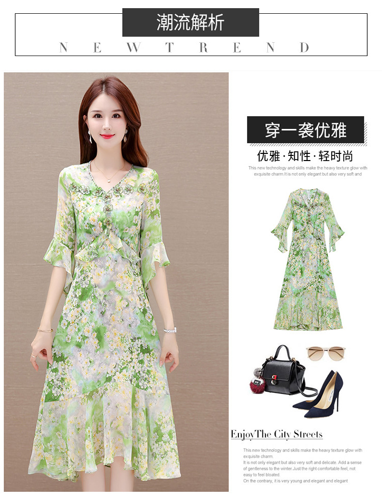 夏季新款,短袖裙荷叶边拼结中长款鱼尾裙时尚女装印花连衣裙QYM-TYP-YLYM817-Y