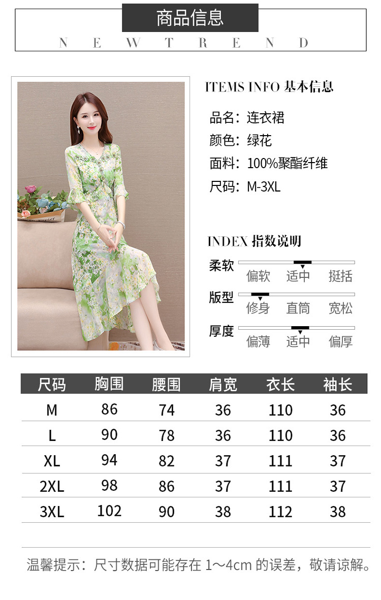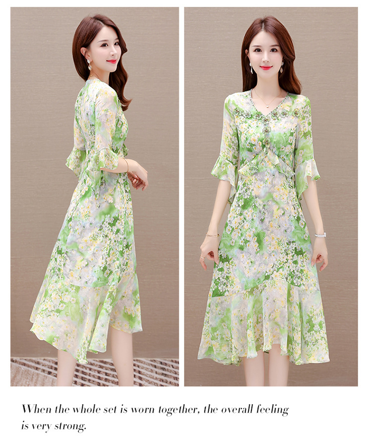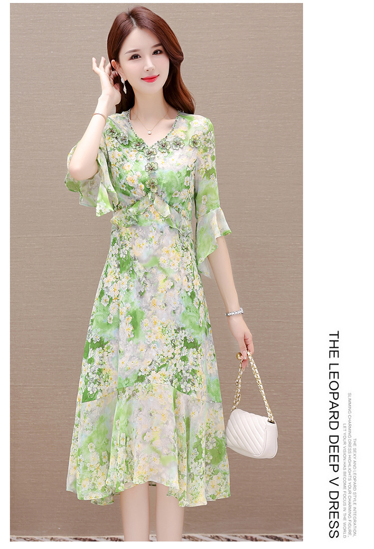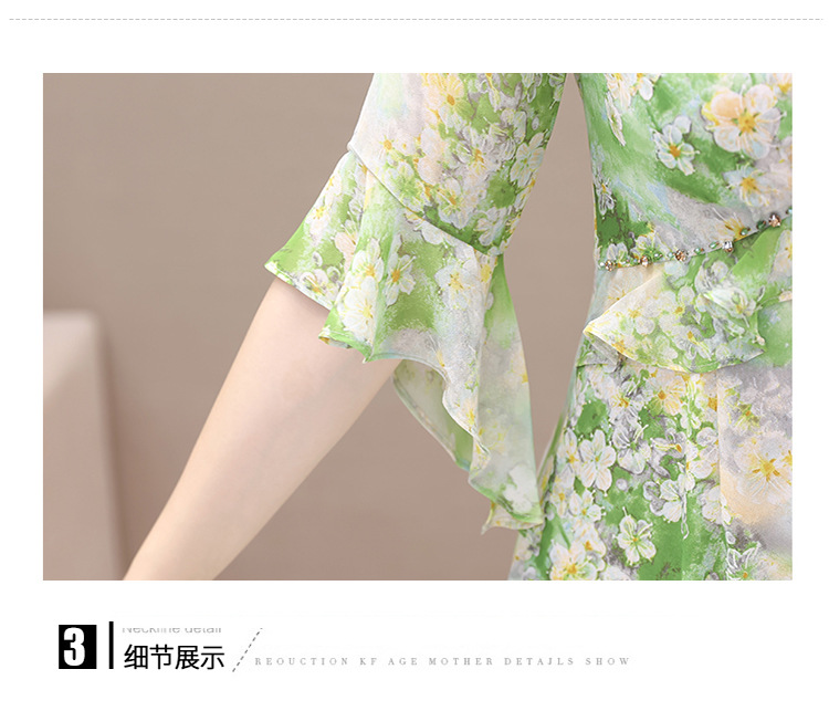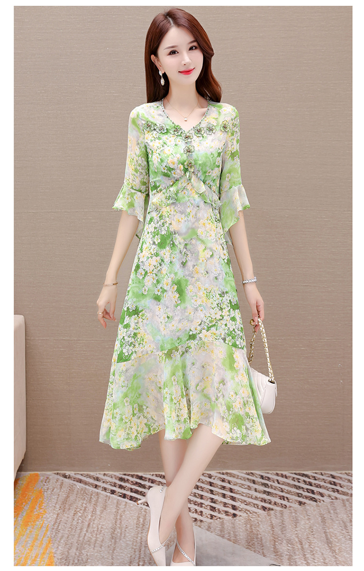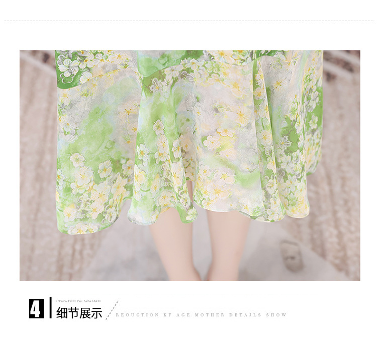 夏季新款,短袖裙荷叶边拼结中长款鱼尾裙时尚女装印花连衣裙QYM-TYP-YLYM817-Y