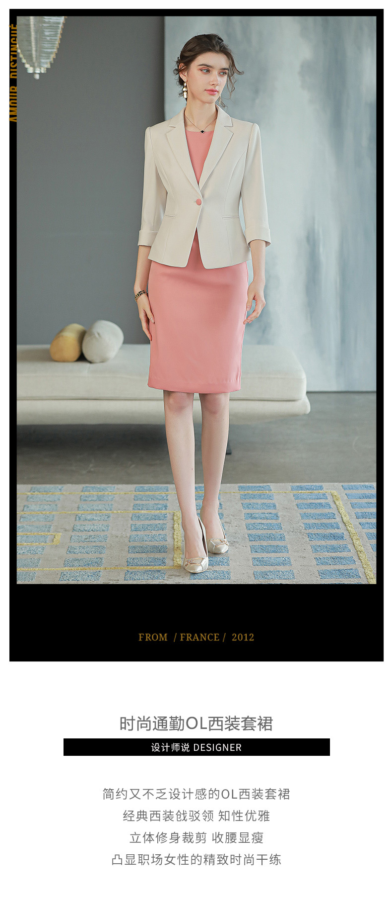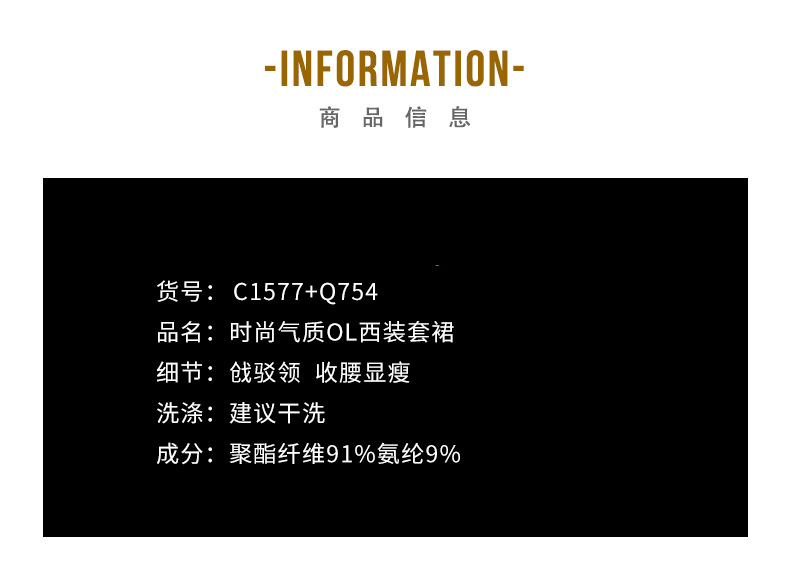 IWY/职业装气质女神范套装裙女时尚气质两件套七分袖ol背心连衣裙C1577+Q754