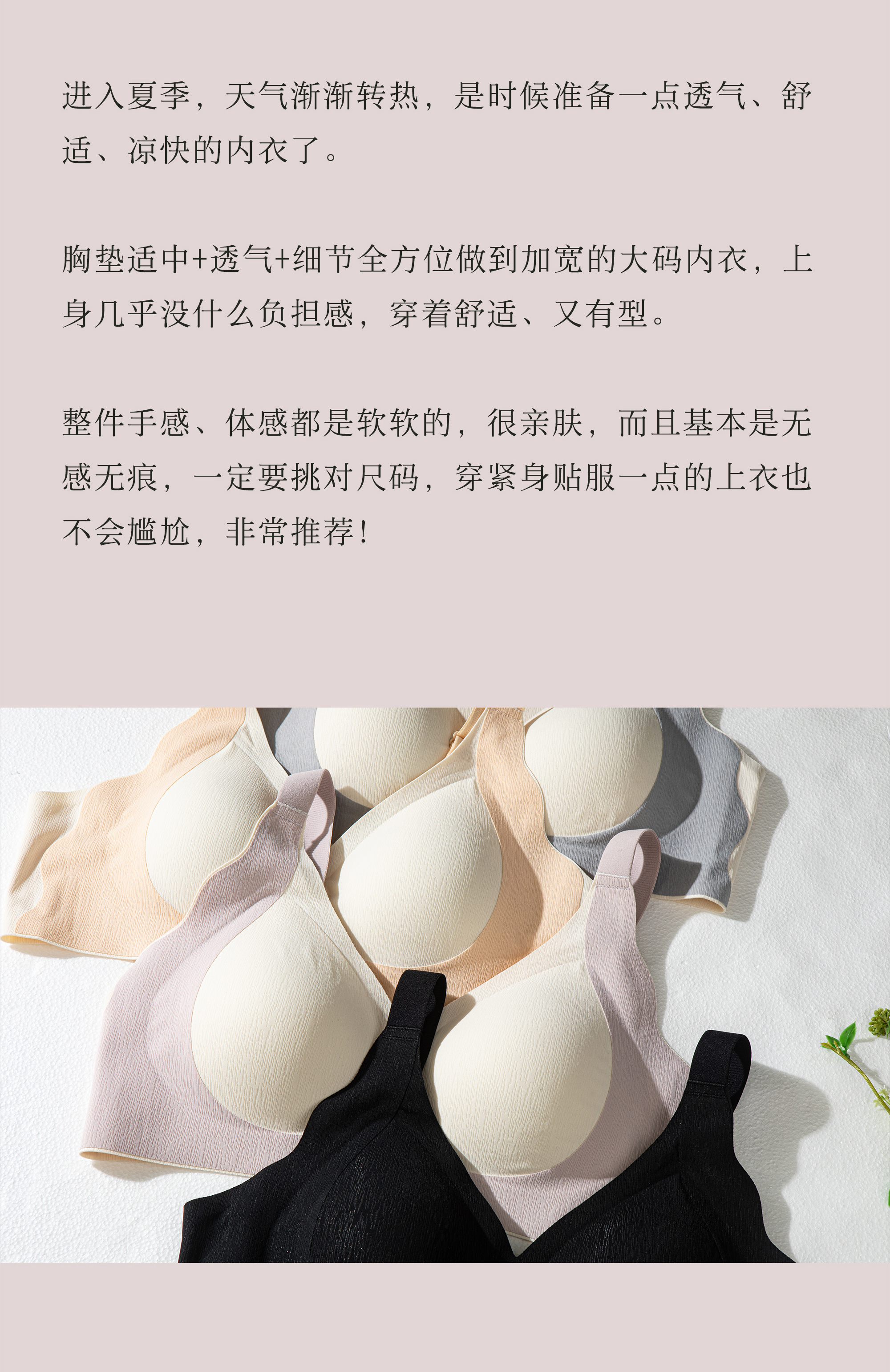 🍃【夏季文胸】薄款大胸显小,无钢圈,收副乳,防下垂,调整型大码内衣。果冻条支撑,多色选择,黑色神秘性感、浅色优雅不透,夏季穿透气、亲肤、绵软、QQ弹弹。6天内发货