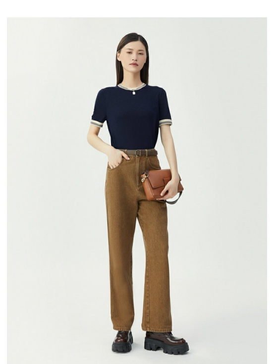 它是不折不扣的复古潮流款。 妈妈们年轻的时候, 时尚杂志里就到处可见针织短袖