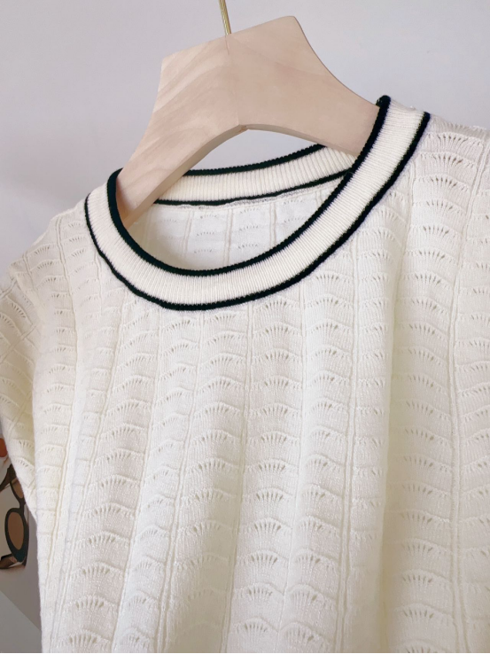 乍暖还寒的春季,早晚有些凉意。 这时候换一件经典百搭的针织短袖, 温度刚好,气质更佳。