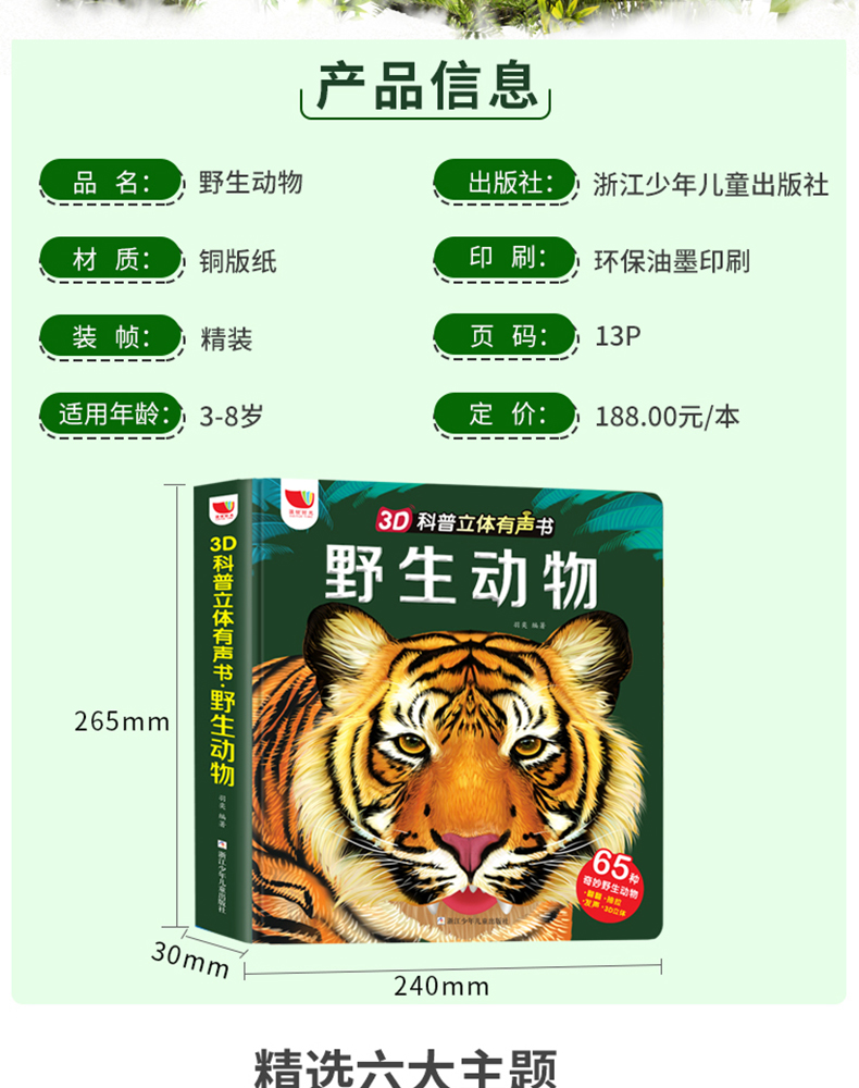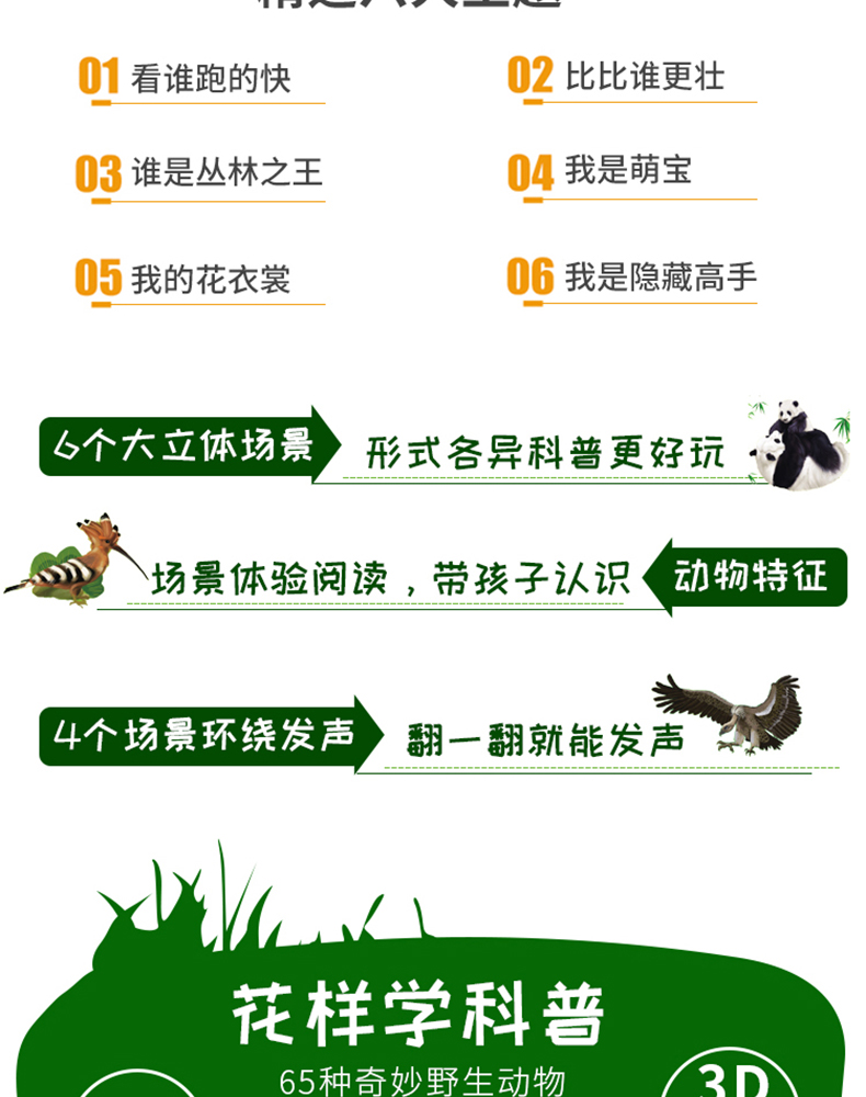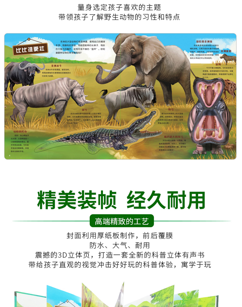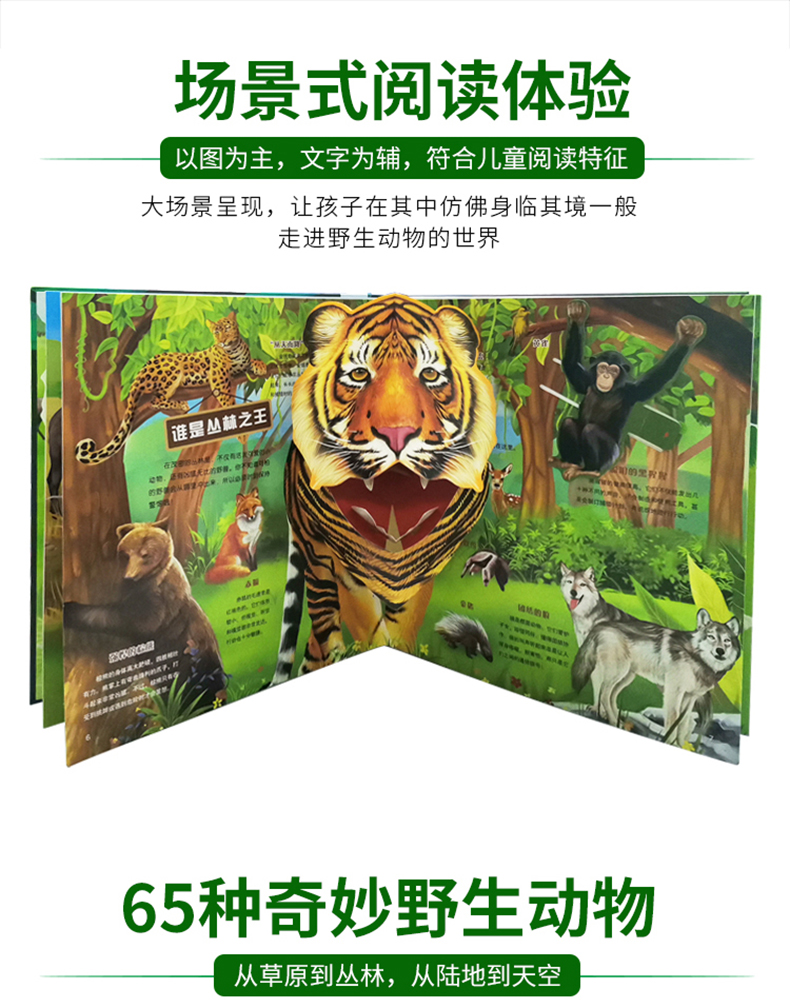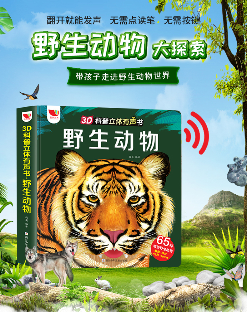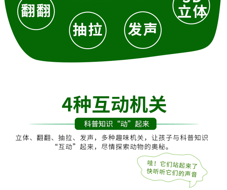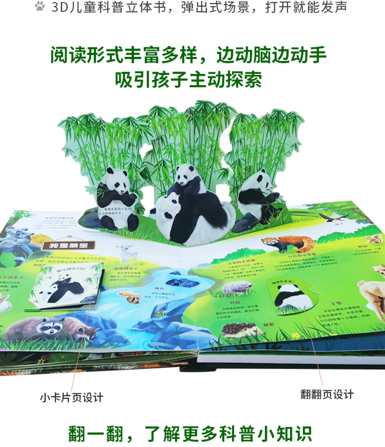 野生动物3d科普立体有声书会说话的早教儿童3d立体书翻翻书认知小百科点读机宝宝启蒙1-2-3-6岁绘本故事书婴幼儿有声音的三d发声书