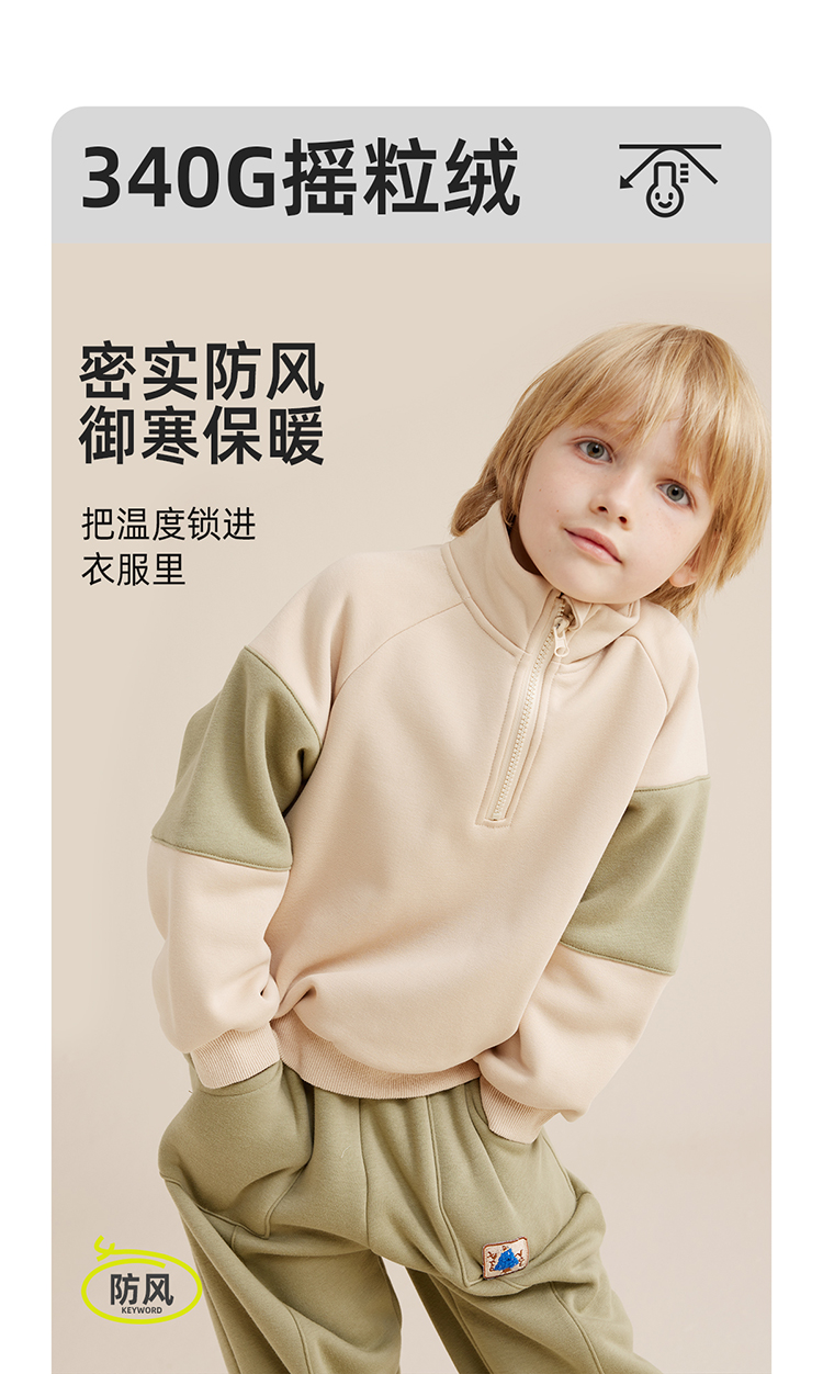 【防寒保暖摇粒绒】美式立领加绒卫衣套装PQTZ2303