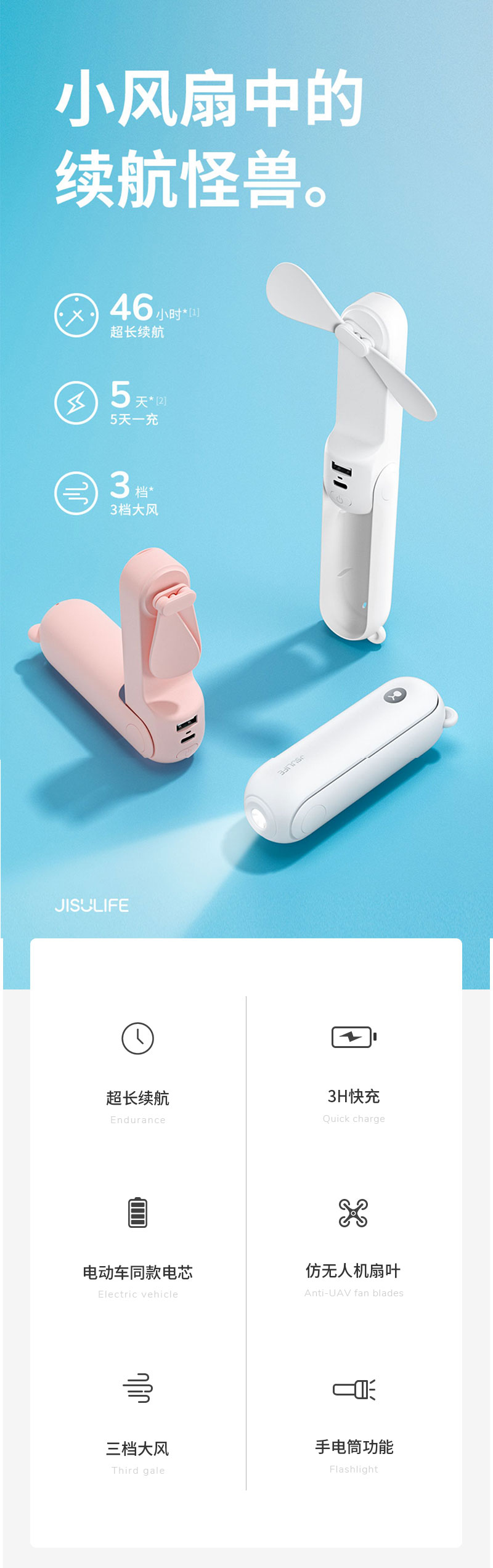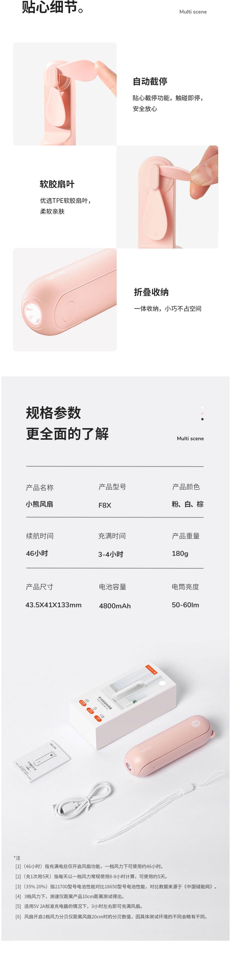 几素多功能收纳折叠风扇F8(2000mAh)【伊藤优选301692】