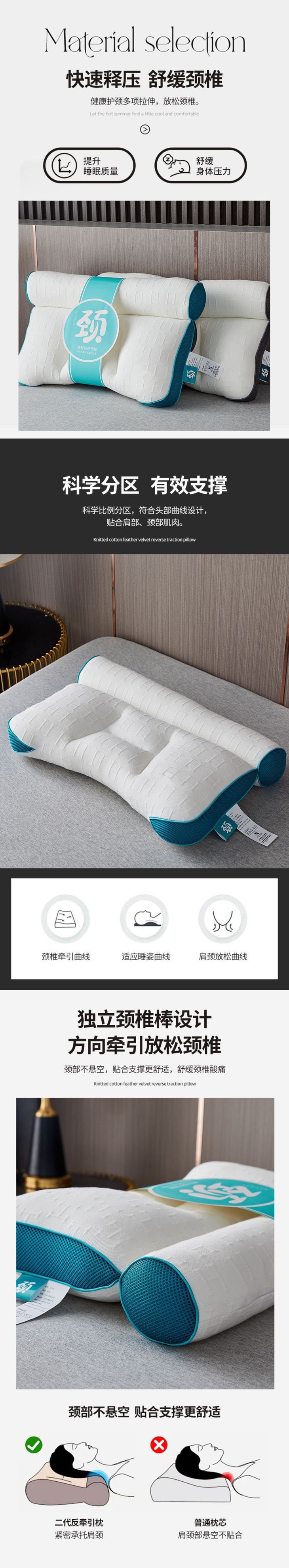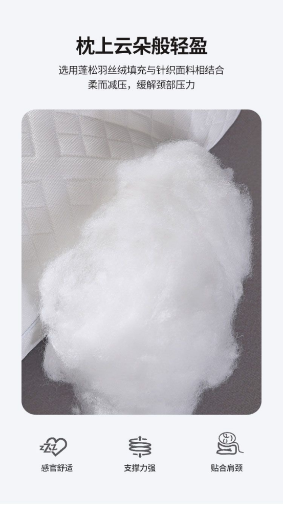 ⭕5大分区,无论怎么睡,都能很好的托住颈部,深度调节睡姿,养护颈椎 ⭕内芯用超细羽绒填充,柔软蓬松,且静音,久睡不塌,精准科学配比,饱满蓬松五秒回弹!