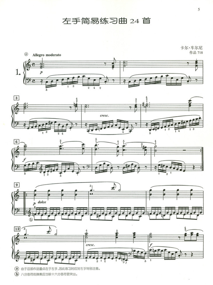 书名: 车尔尼左手简易练习曲24首(作品718原版引进)