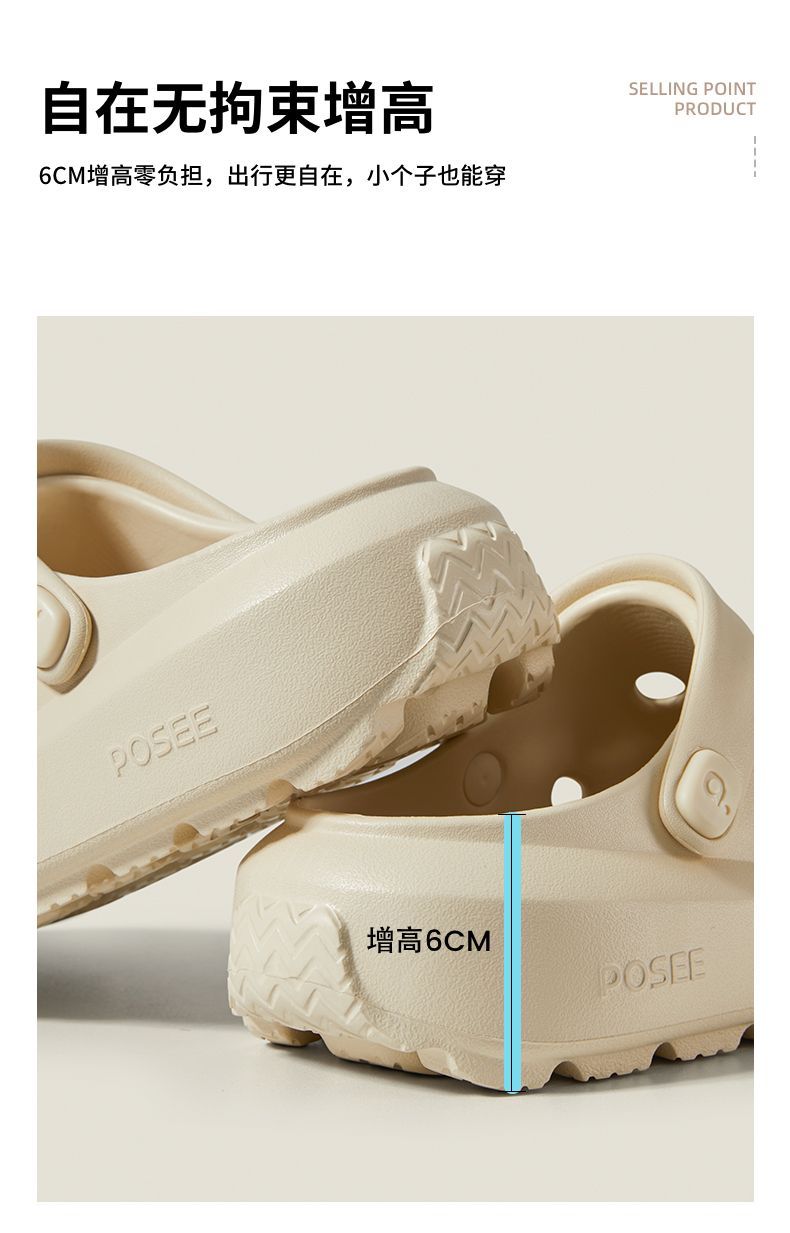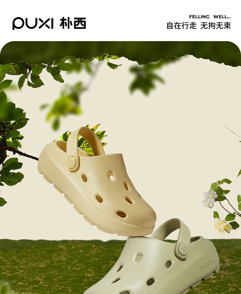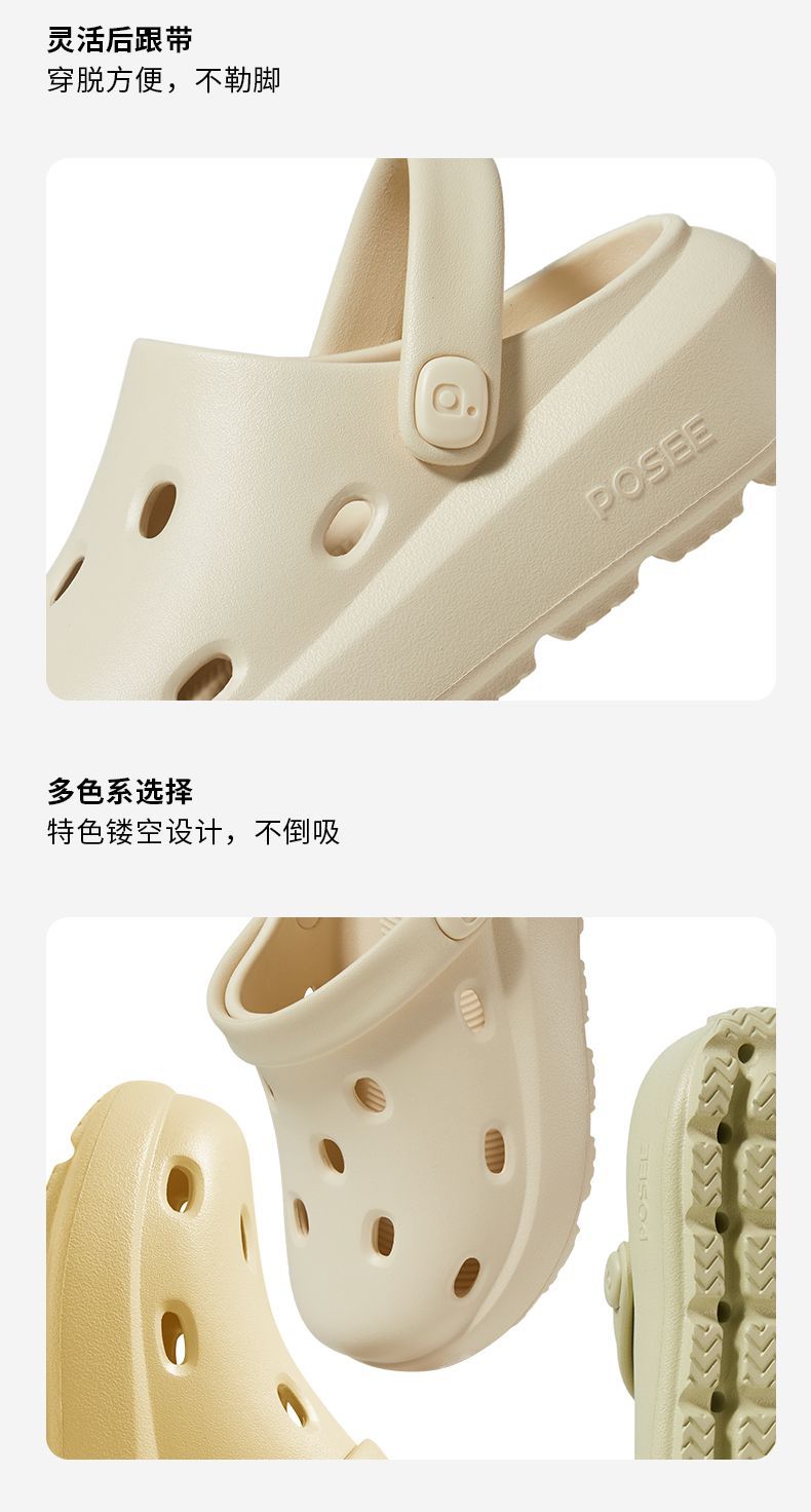 PUXI朴西奶酪洞洞鞋女夏厚底情侣款户外沙滩鞋增高踩屎感防滑拖鞋
