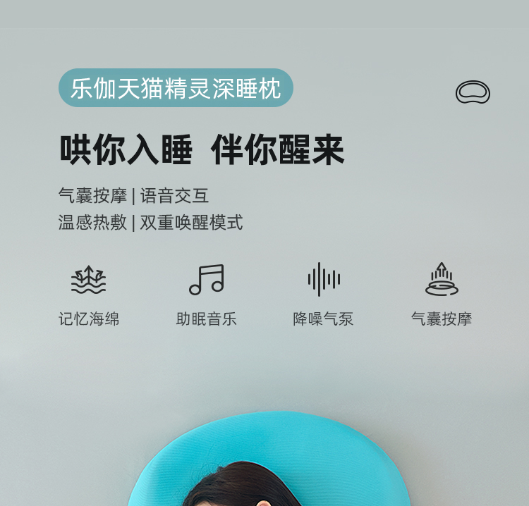 专享-乐范天猫精灵智能梦香枕头多功能加热语音按摩睡眠减压家用颈枕 商品图2