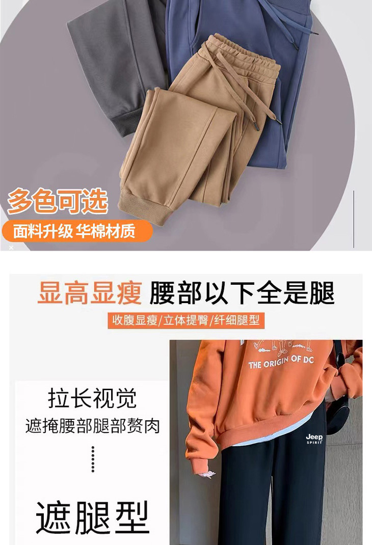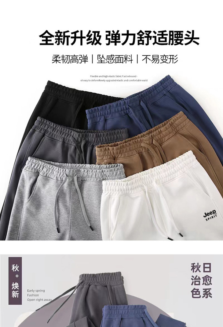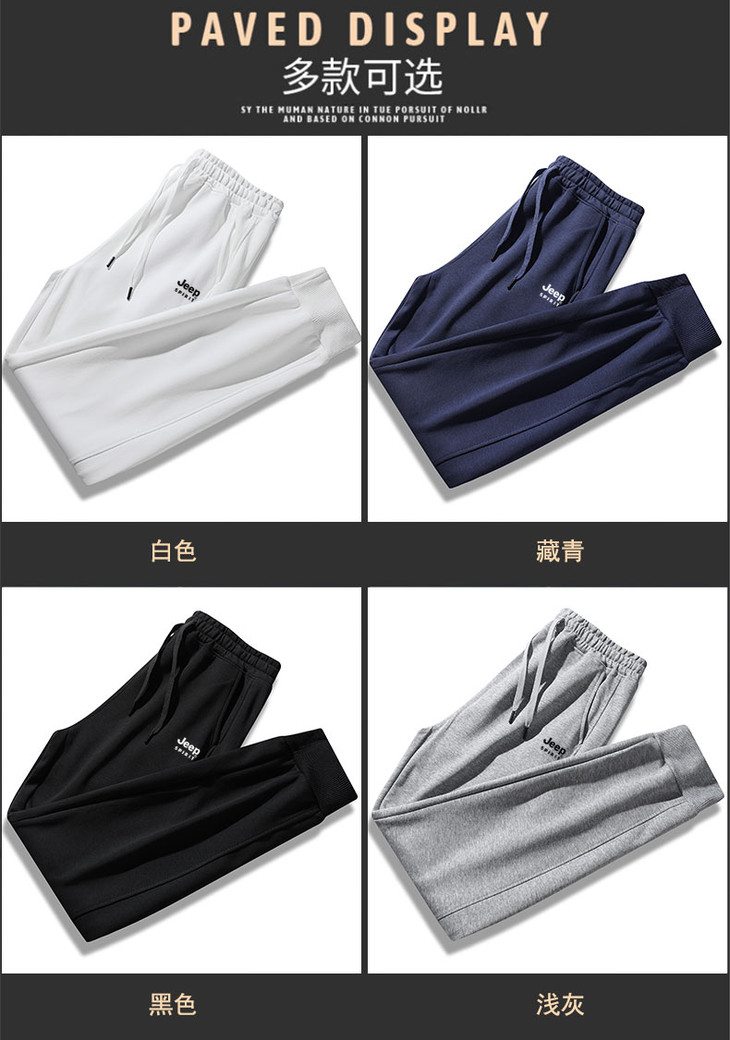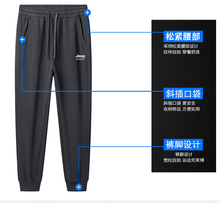 【Jeep情侣休闲卫裤JP903款】宽松型休闲裤子320g 新疆棉不起球 百搭束脚哈伦裤