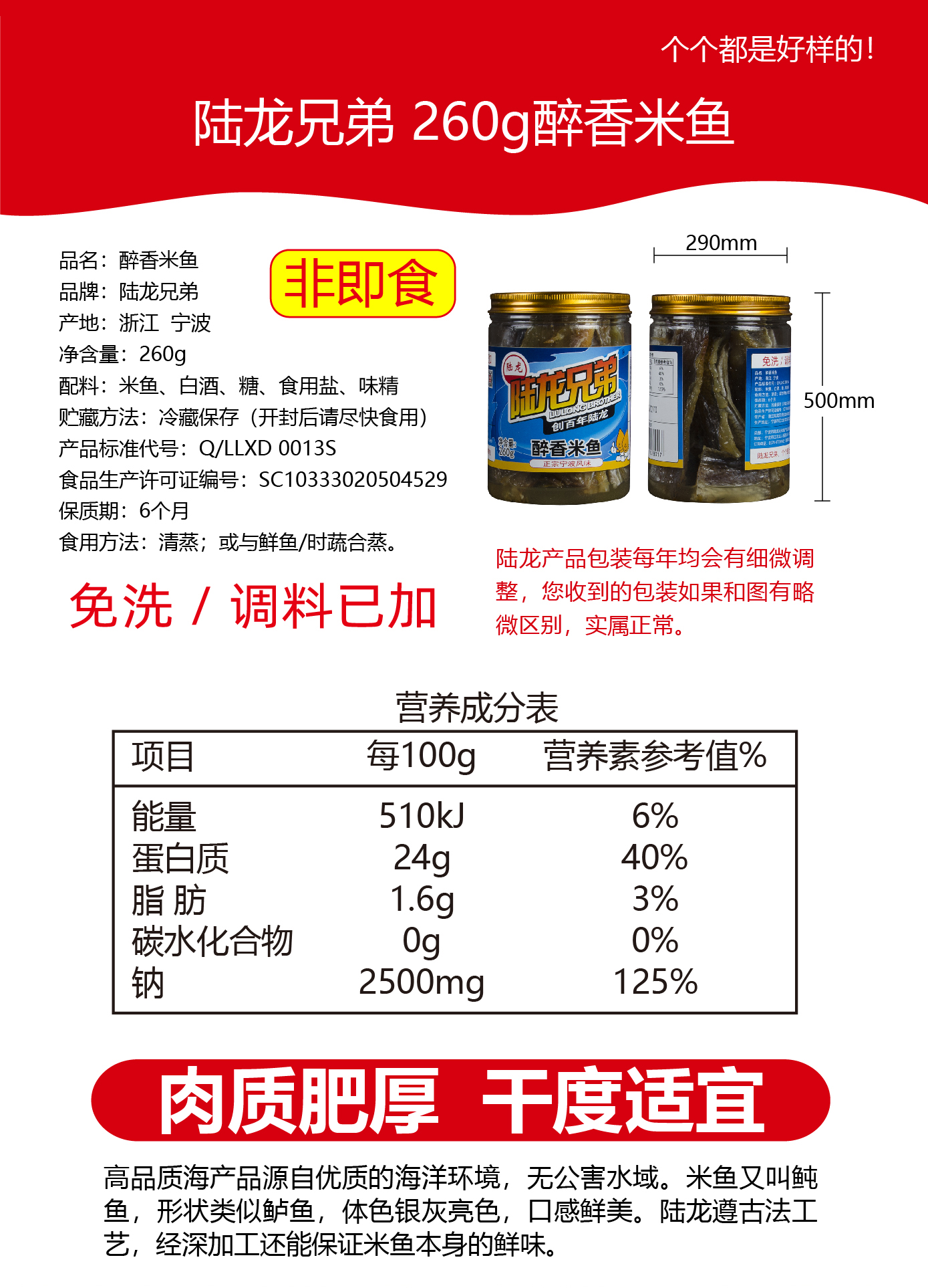 1801陆龙兄弟260g醉香米鱼