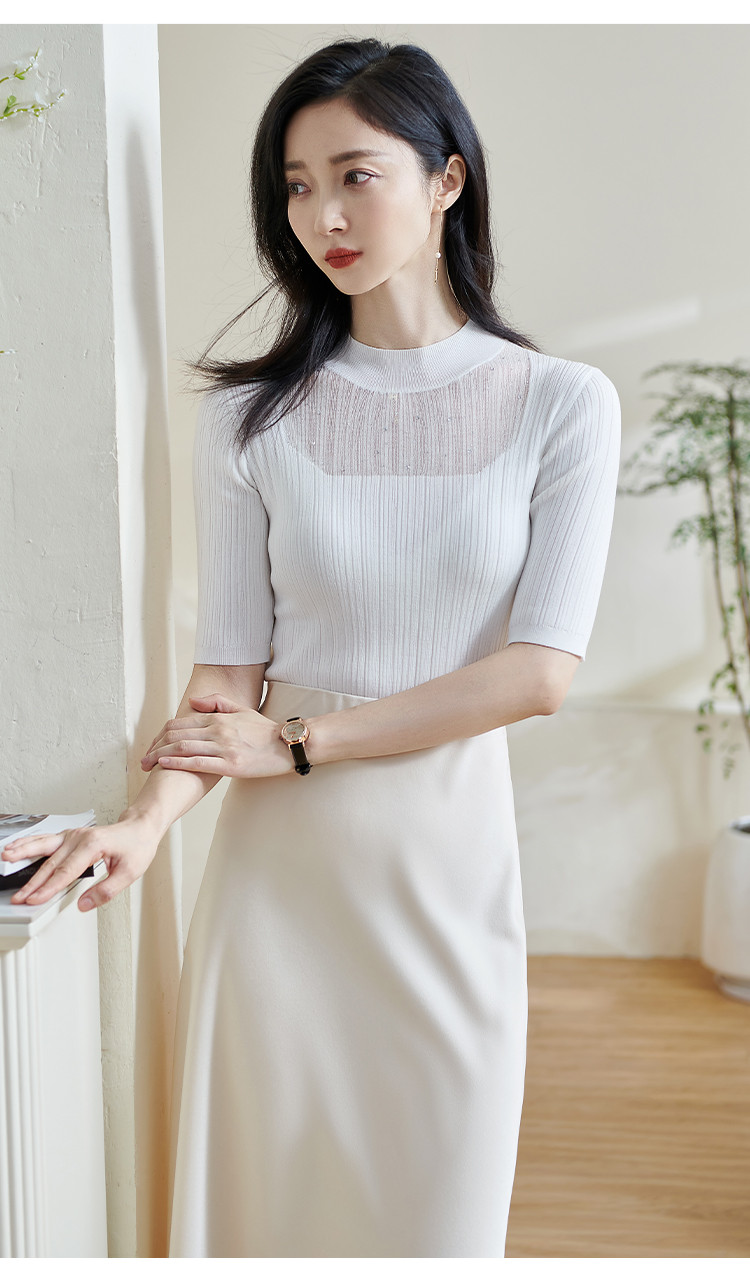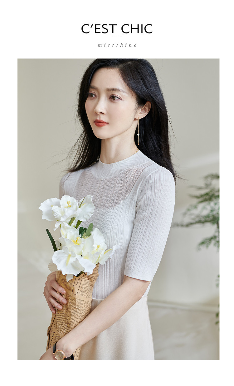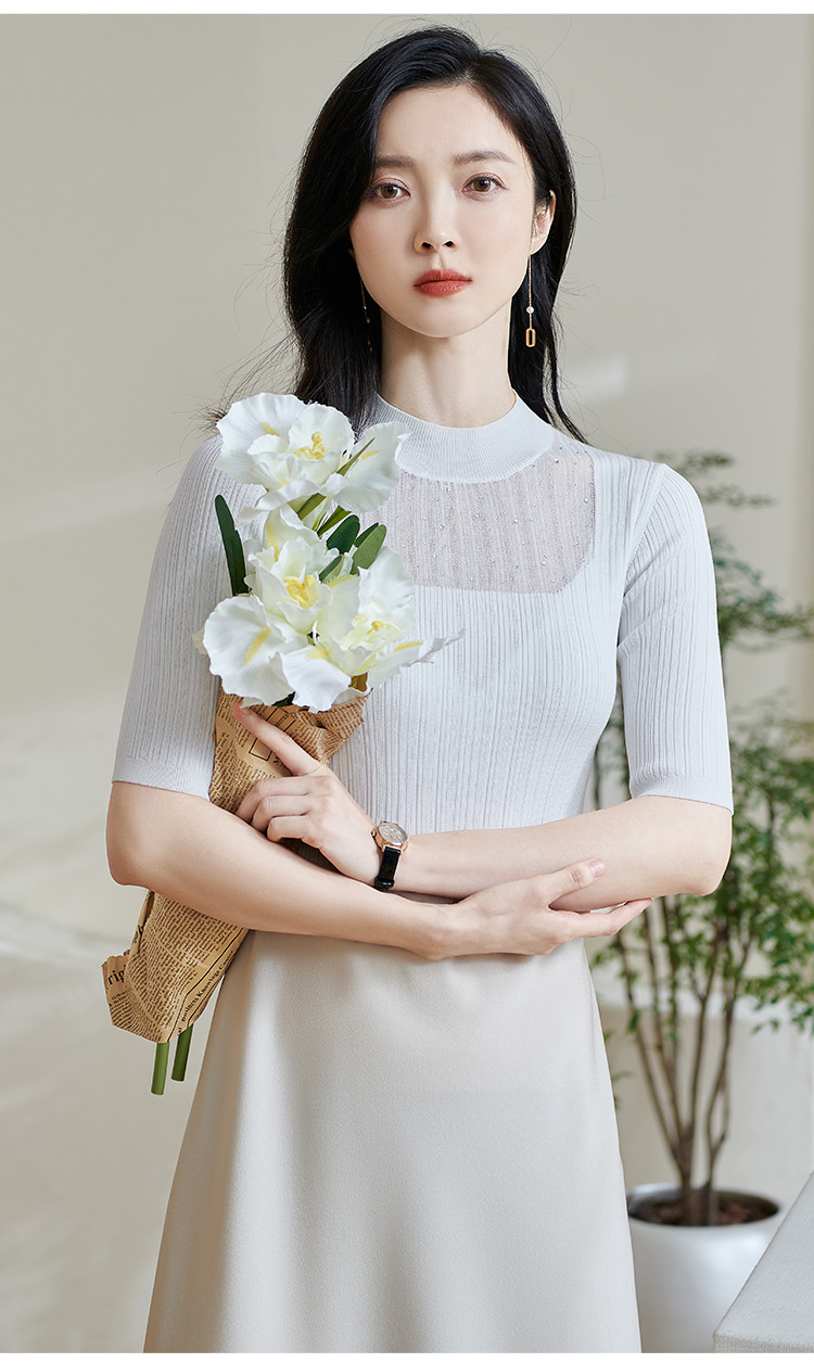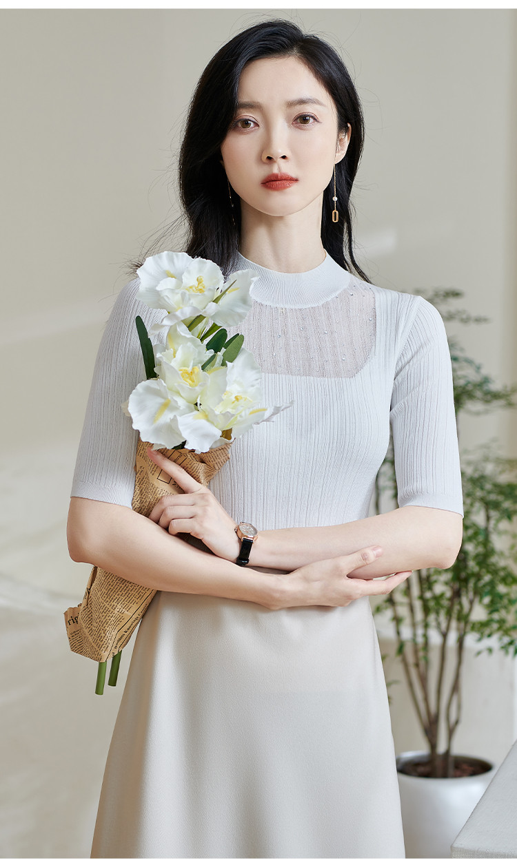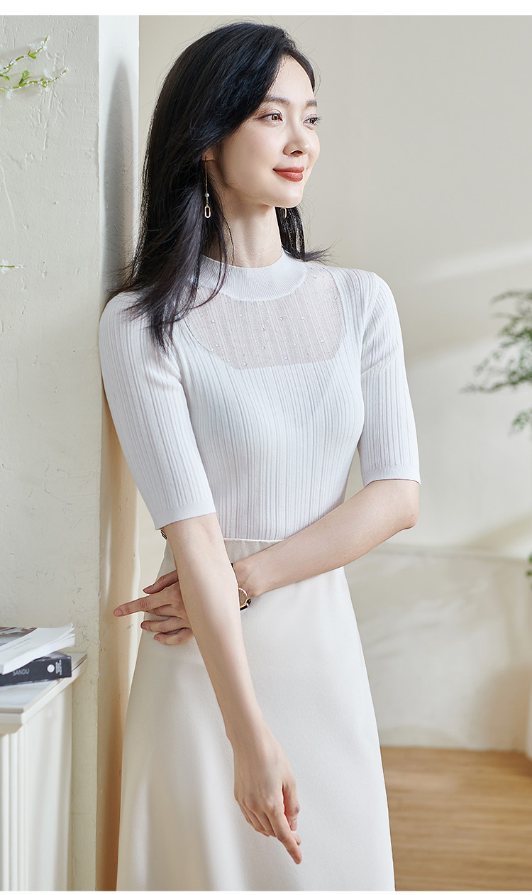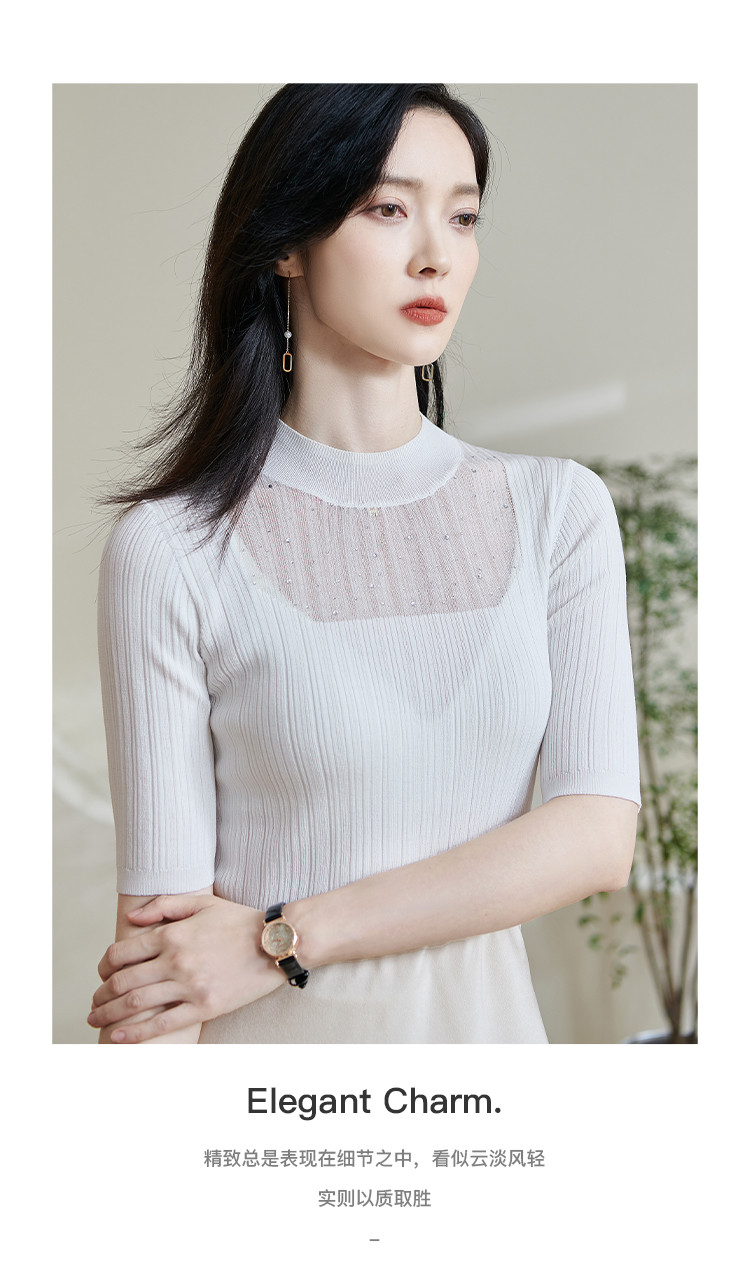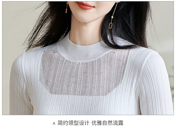 【显瘦针织衫】2026春季新款优雅知性半透烫钻修身上衣女0474