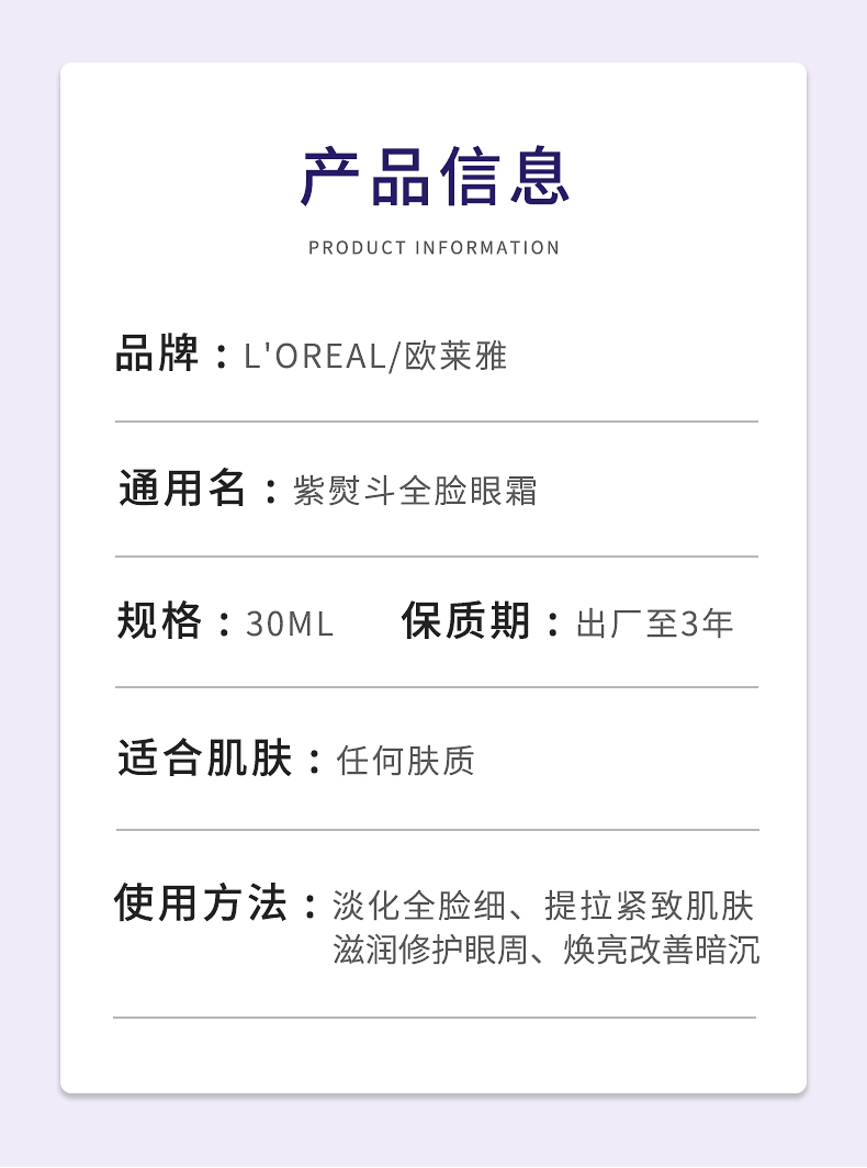 【中欧班列精选】法国欧莱雅熨斗眼霜 30ml