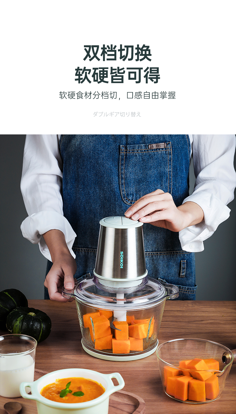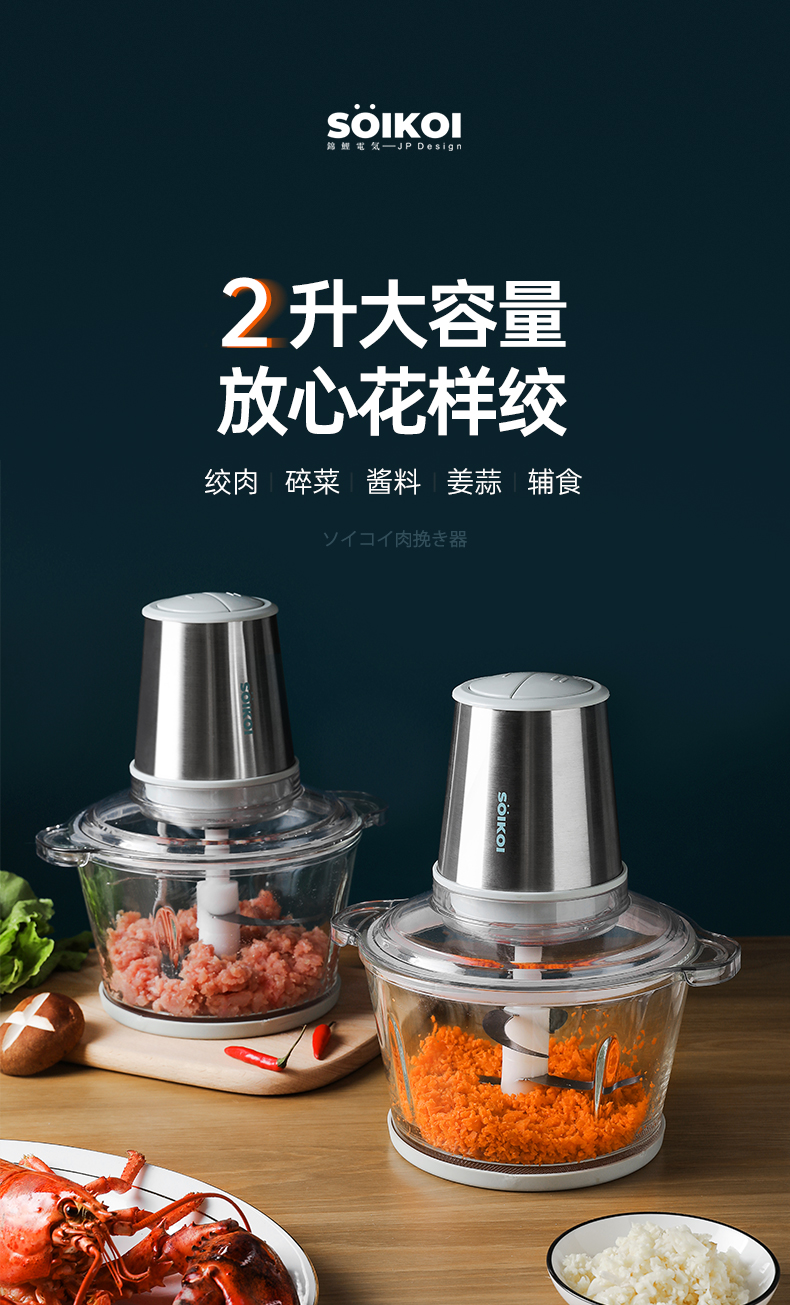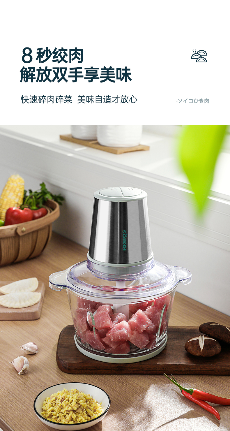 soikoi绞肉机家用电动小型辅食搅拌料理机全自动多功能打肉馅碎菜