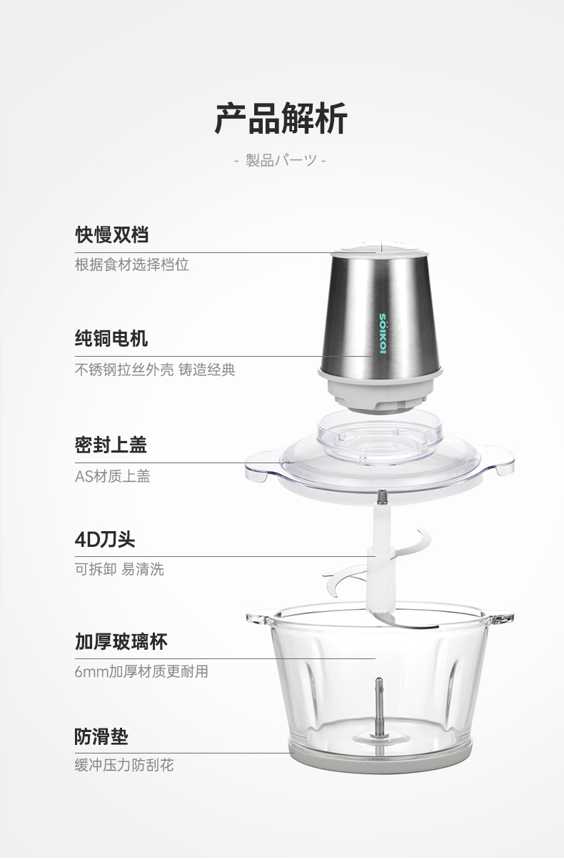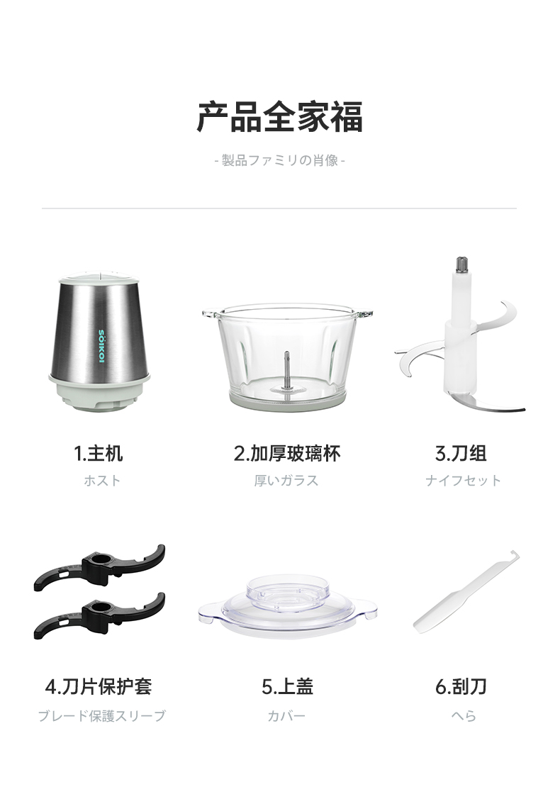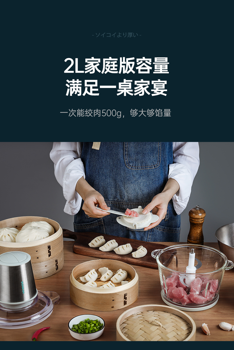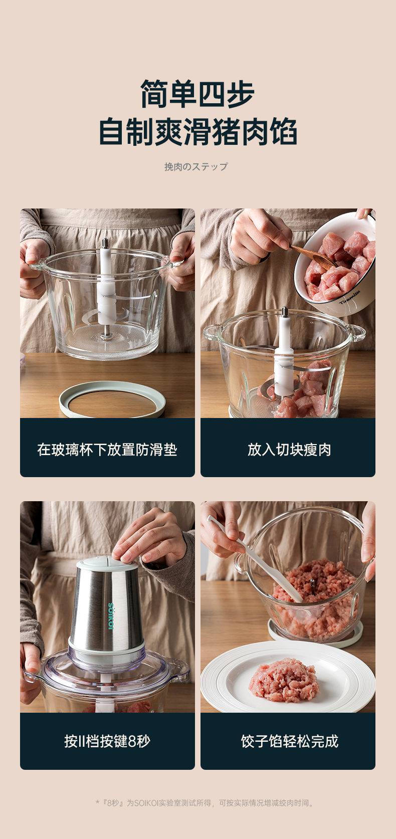 soikoi绞肉机家用电动小型辅食搅拌料理机全自动多功能打肉馅碎菜
