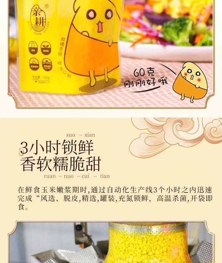 亲耕 即食脱皮玉米粒 辅食甜糯水果玉米果肉60g*10袋