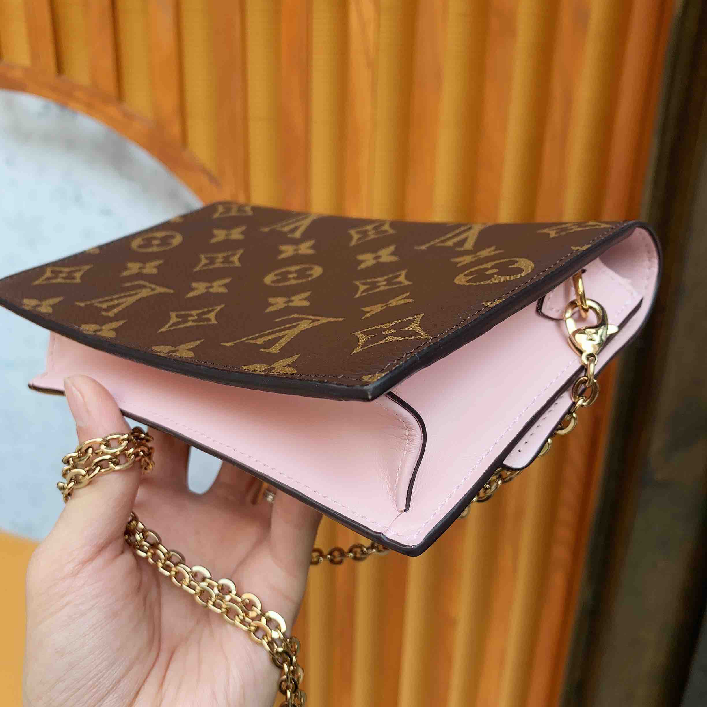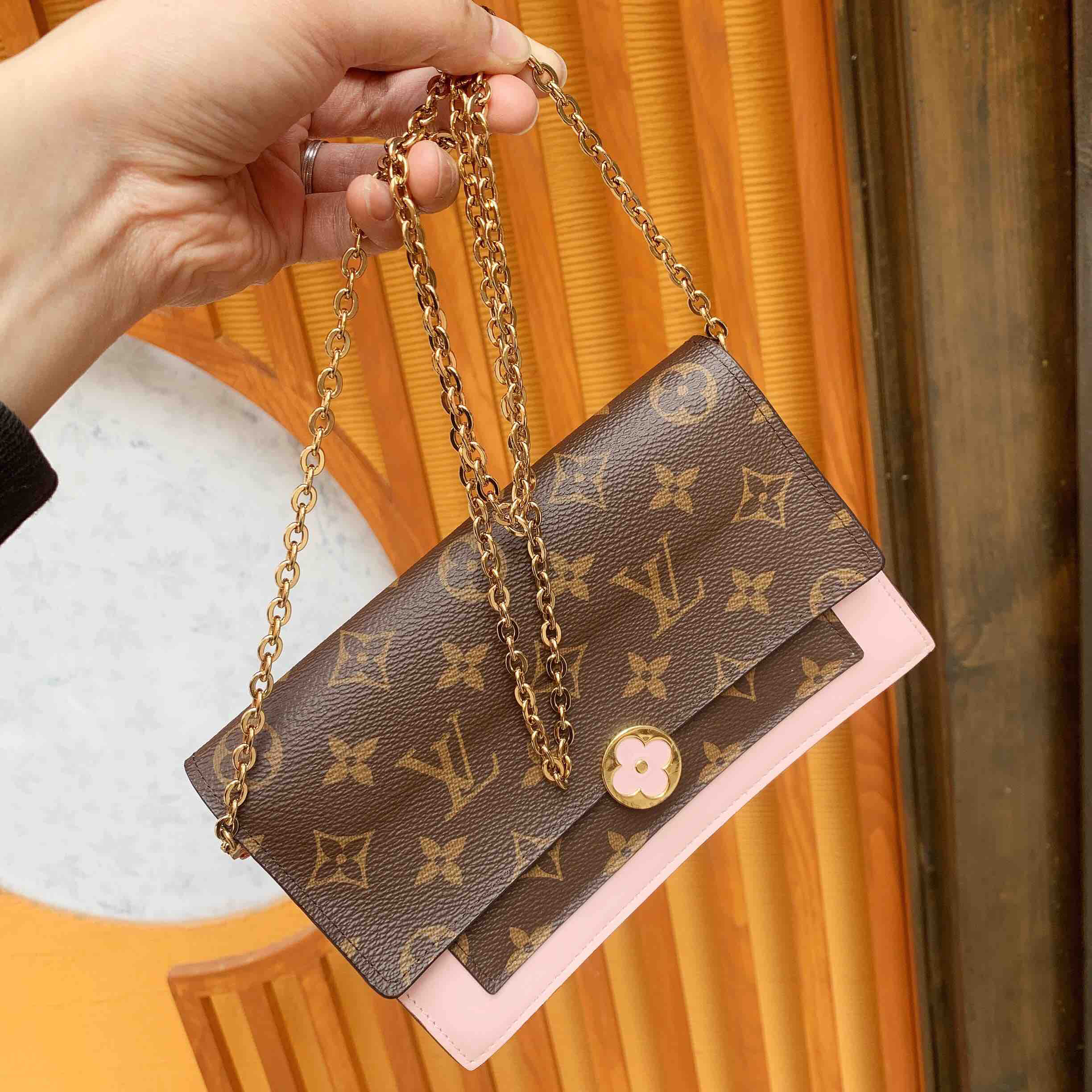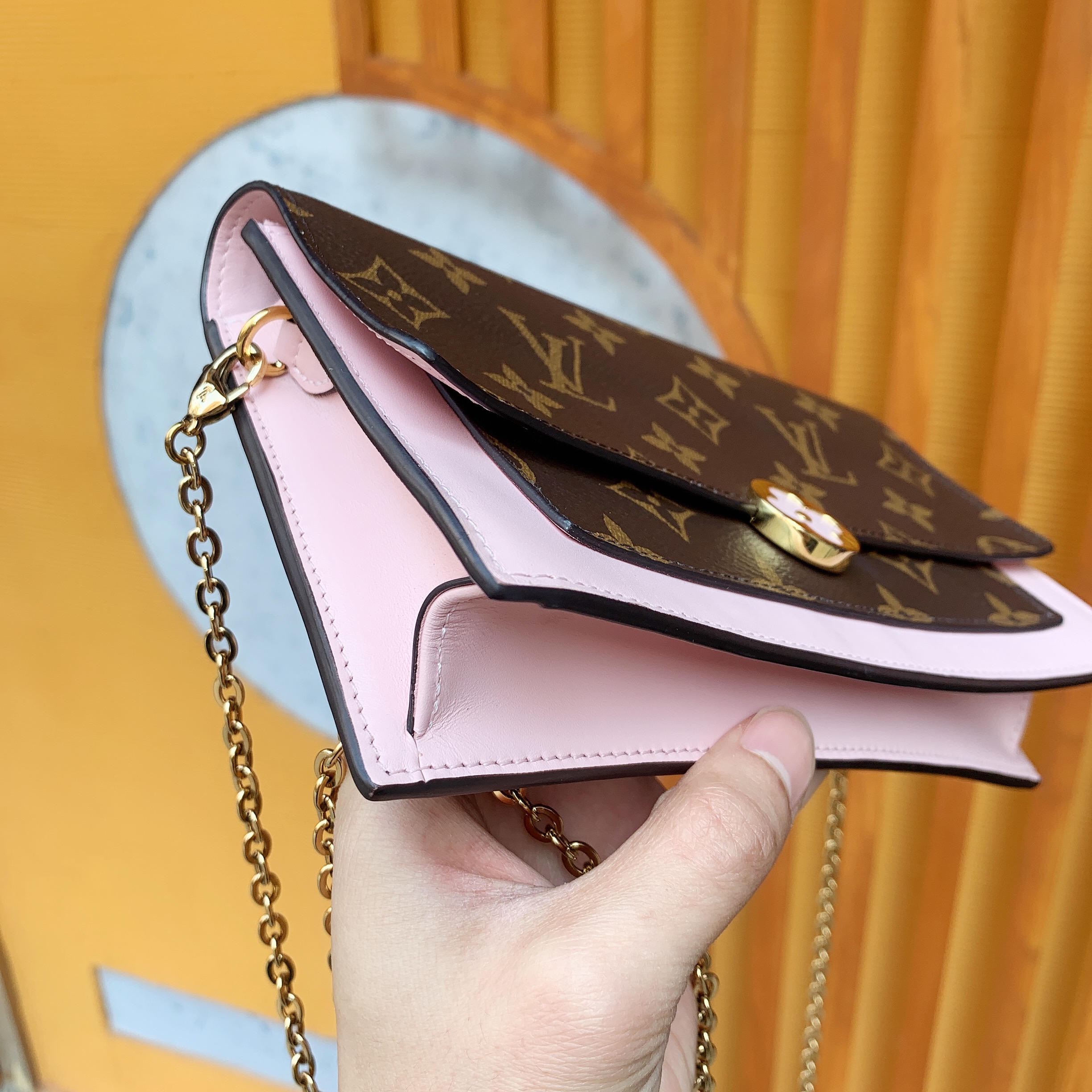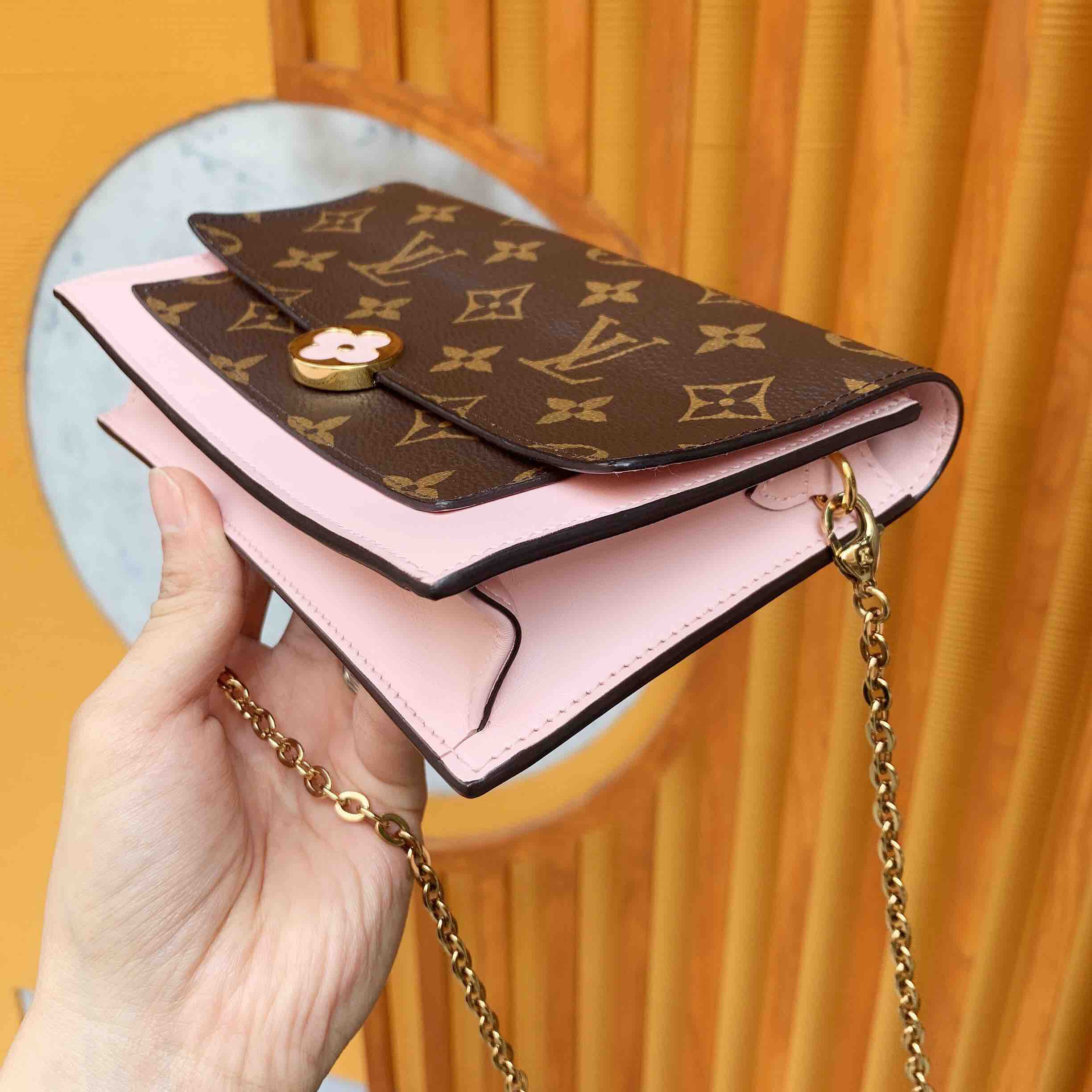 【商品描述】正品二手 Lv Flora 老花拼皮 woc 斜挎包💜98新 19*13 配件:链条 金属扣很轻使用,油边完好无裂纹✨随性百搭 太可爱啦~