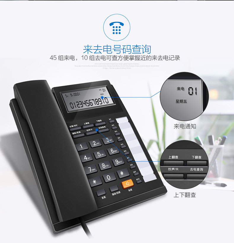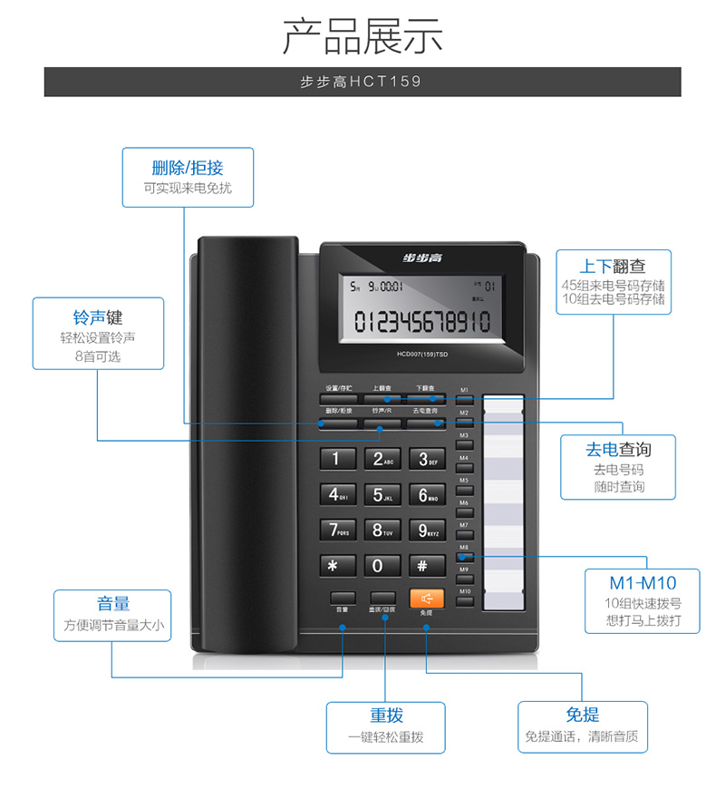 步步高 HCD159 电话机 座机 免电池免提通话/双接口/一键拒接免扰/R 键内线转接/10 组单键存拨(黑色)