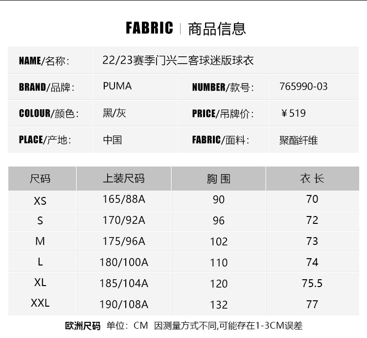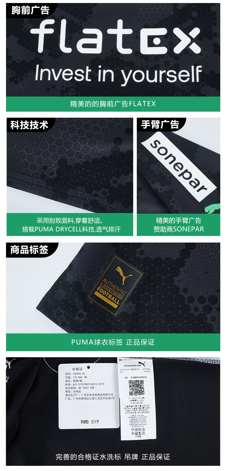 【送球员印号】SFS正品 PUMA彪马2022/23赛季门兴二客球迷版第三球衣765990-03