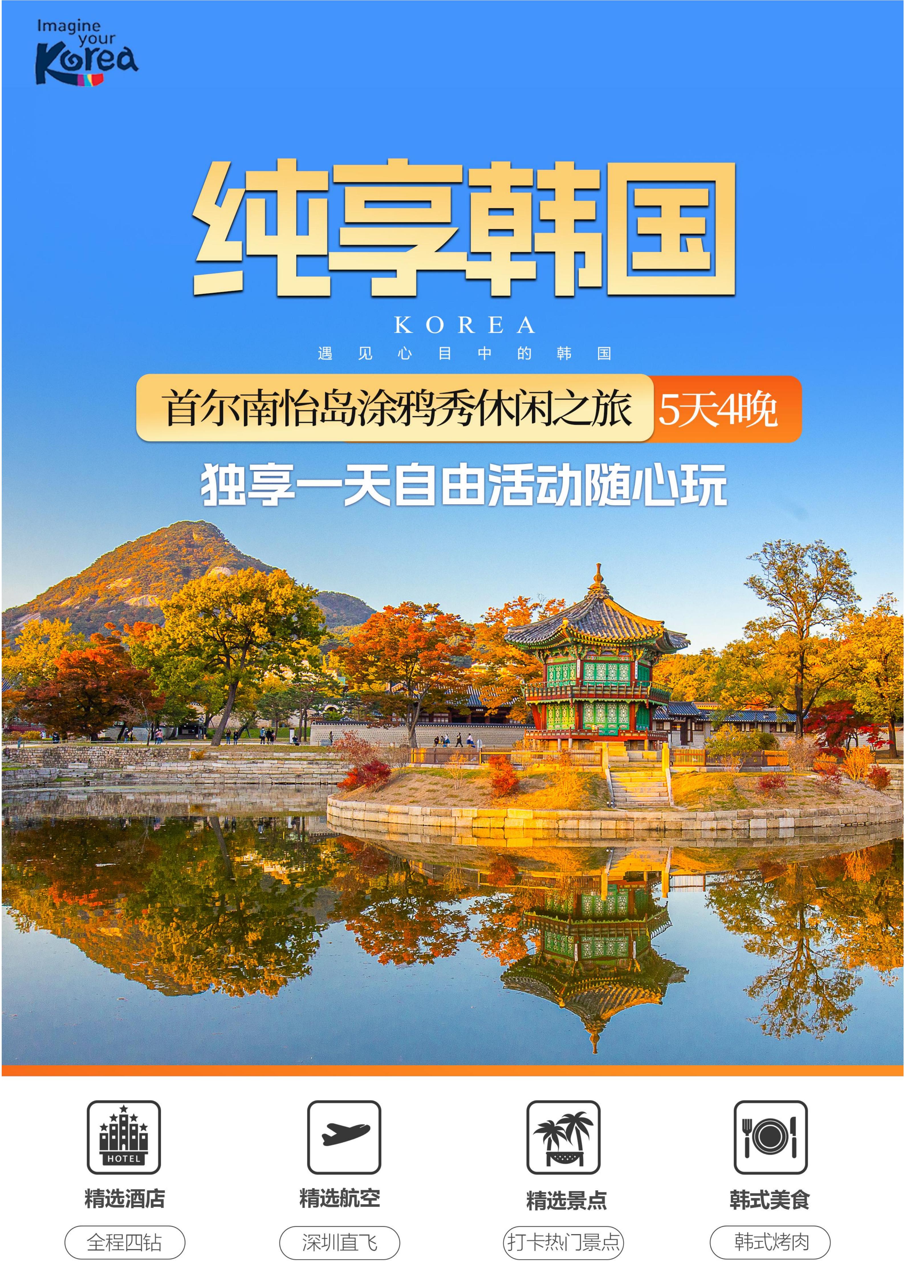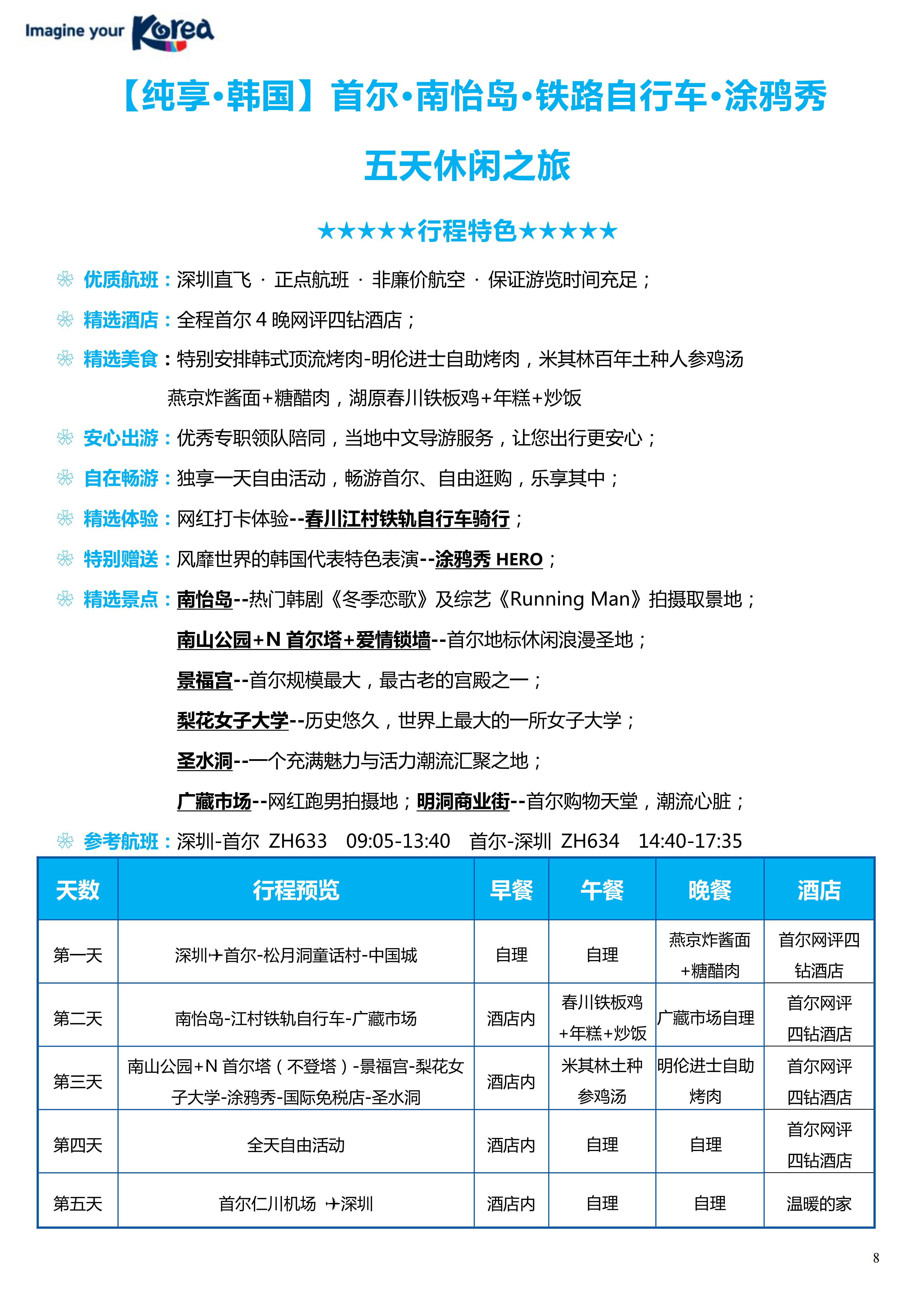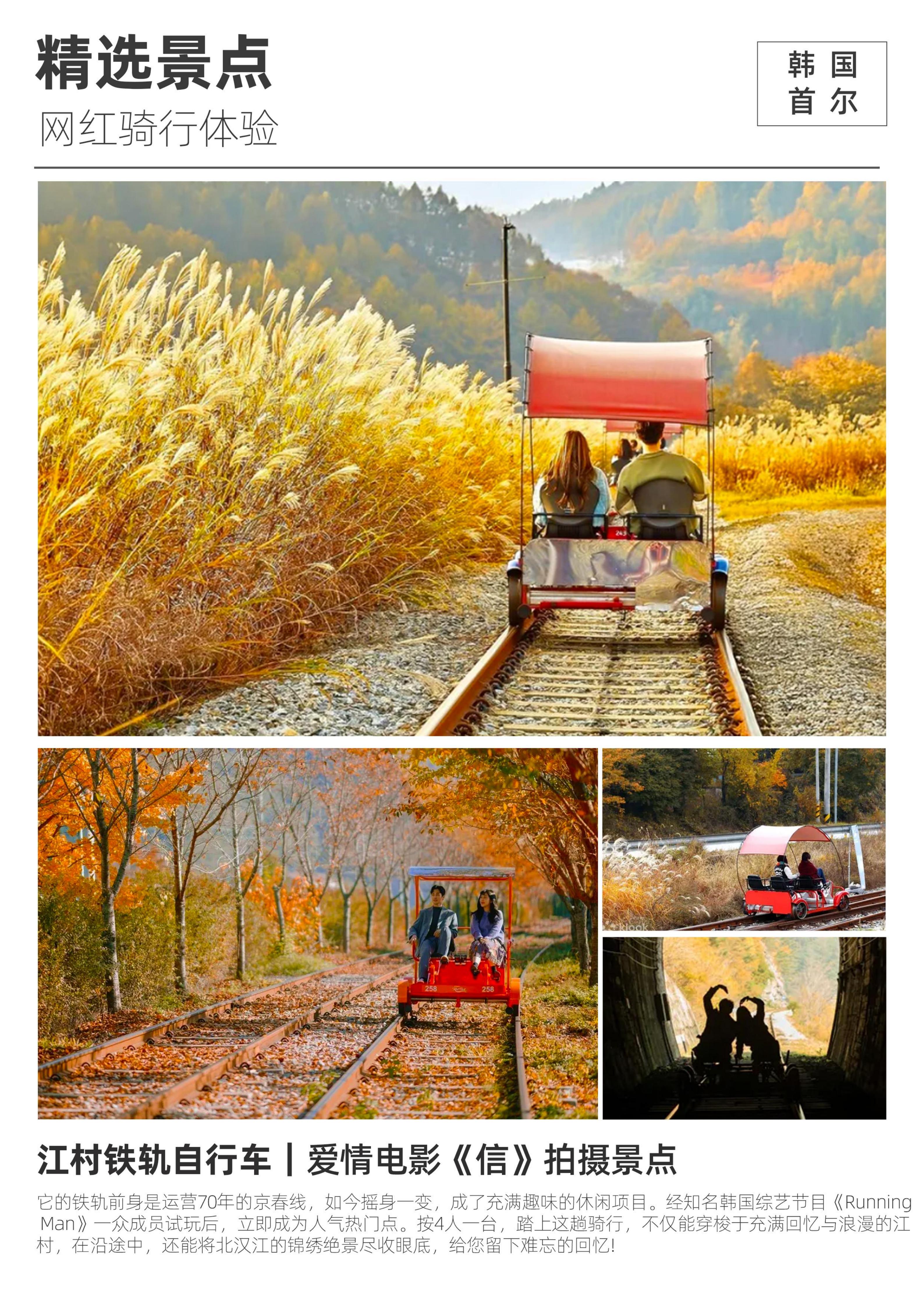 【秋季赏枫】<韩国5天休闲之旅-深圳直飞往返>江村铁路自行车、梨花女子大学、涂鸦秀 HERO、南山公园+N首尔塔+爱情锁墙、景福宫、圣水洞、广藏市场、明洞商业街、首尔1天自由活动