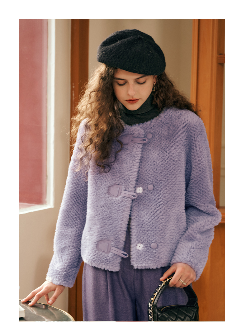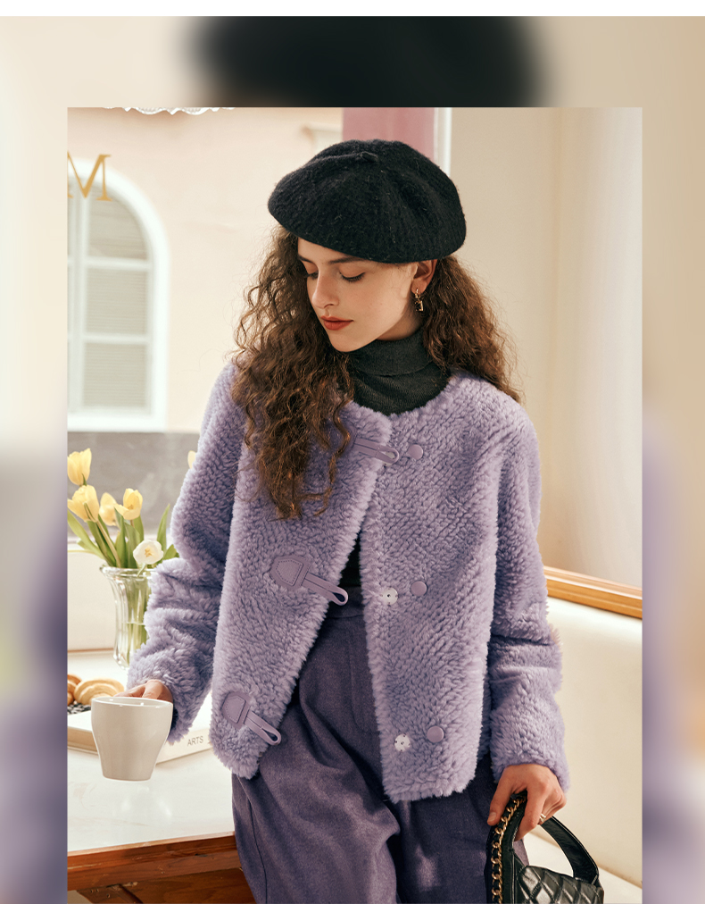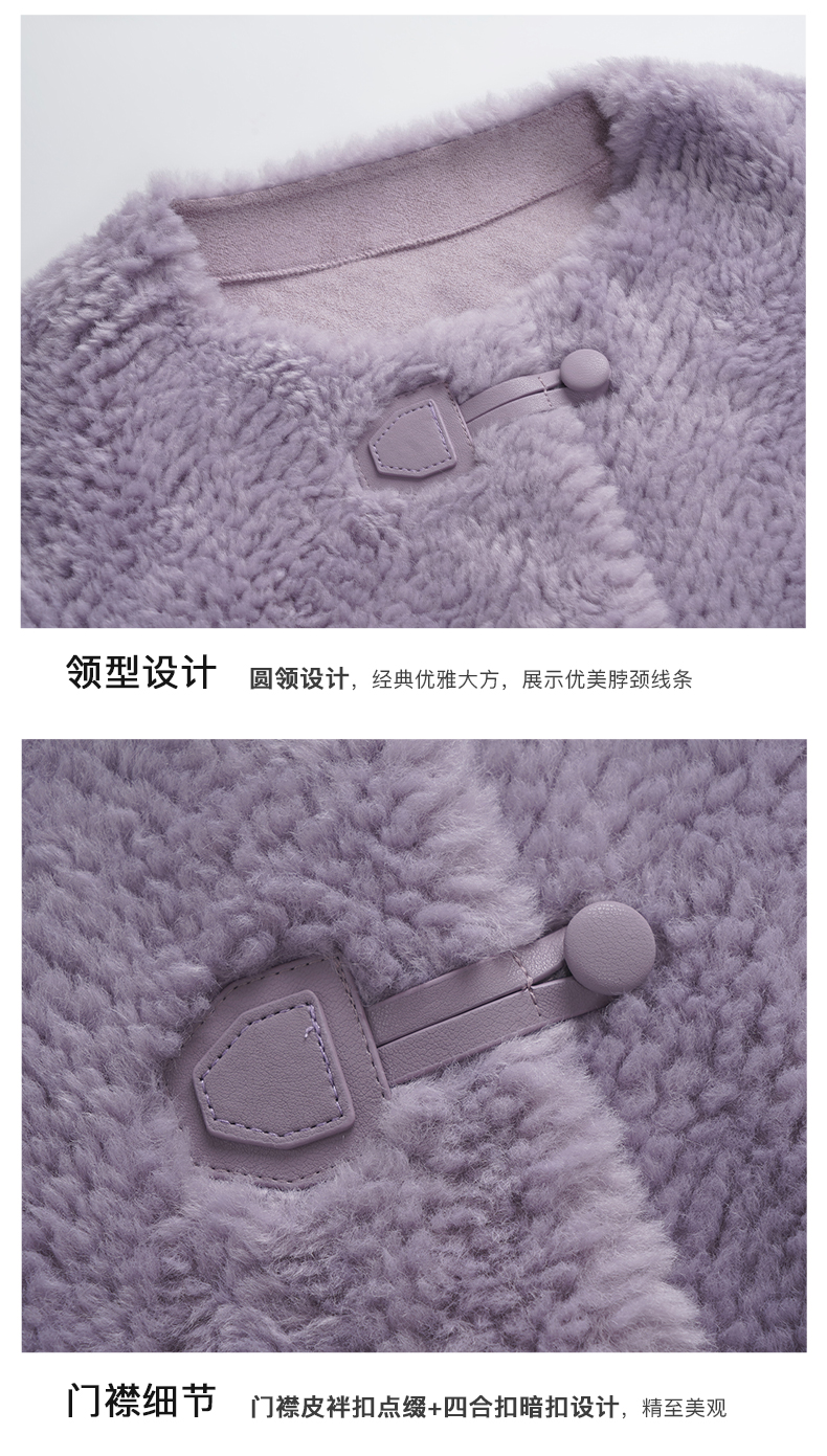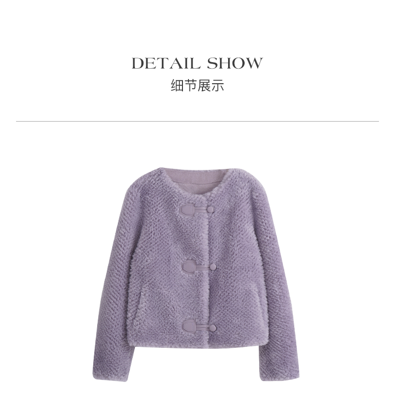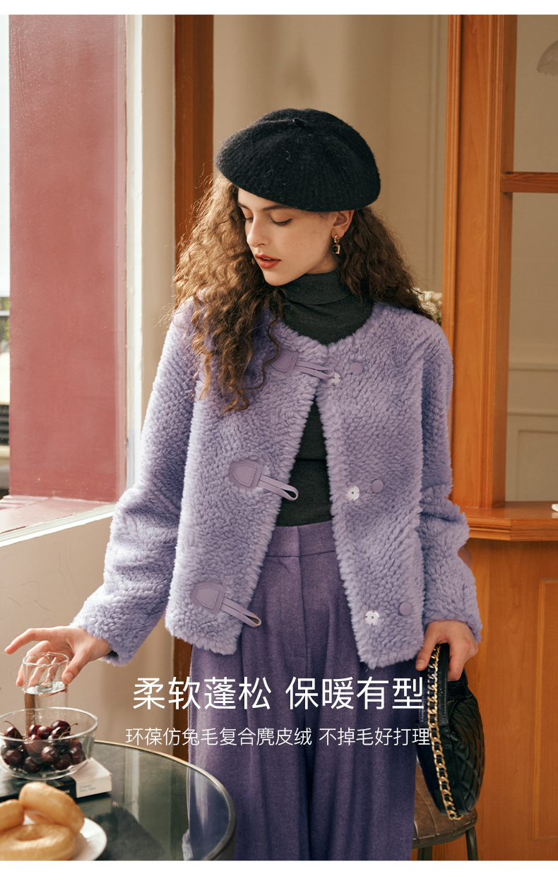 OLrain欧芮儿紫色皮草外套女春2025新款气质皮毛一体小香风上衣
