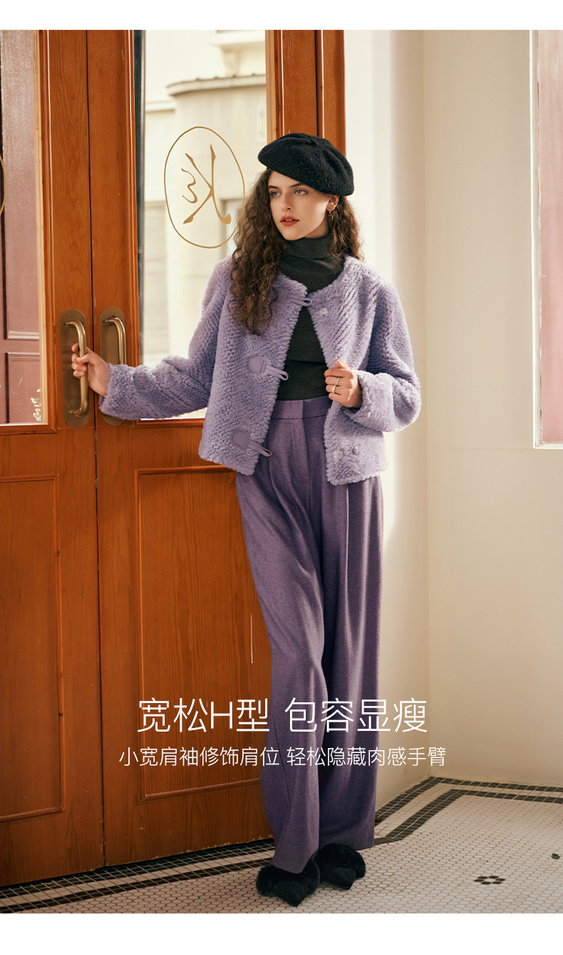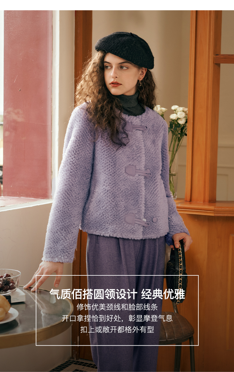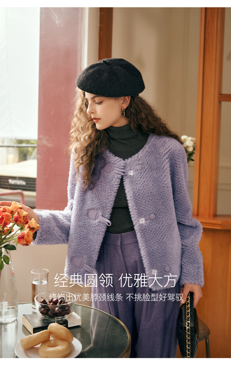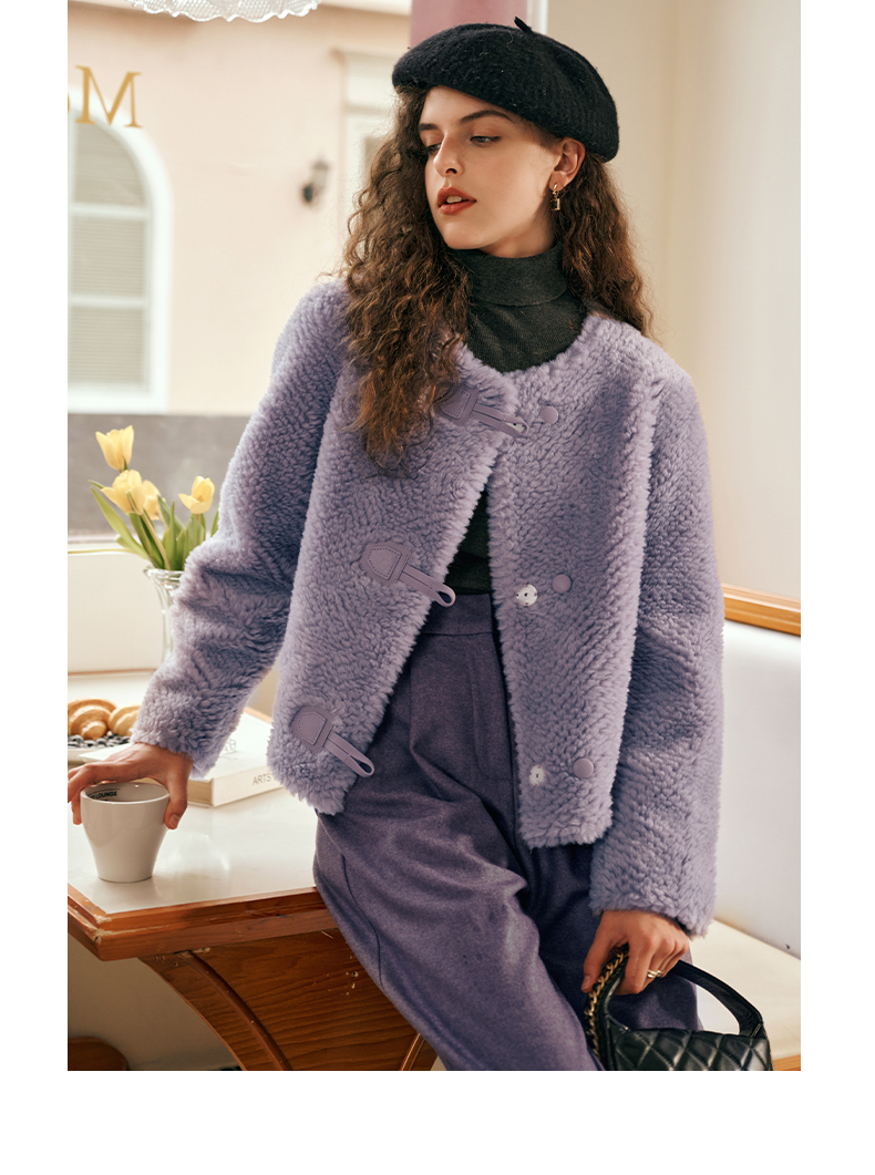 OLrain欧芮儿紫色皮草外套女春2025新款气质皮毛一体小香风上衣