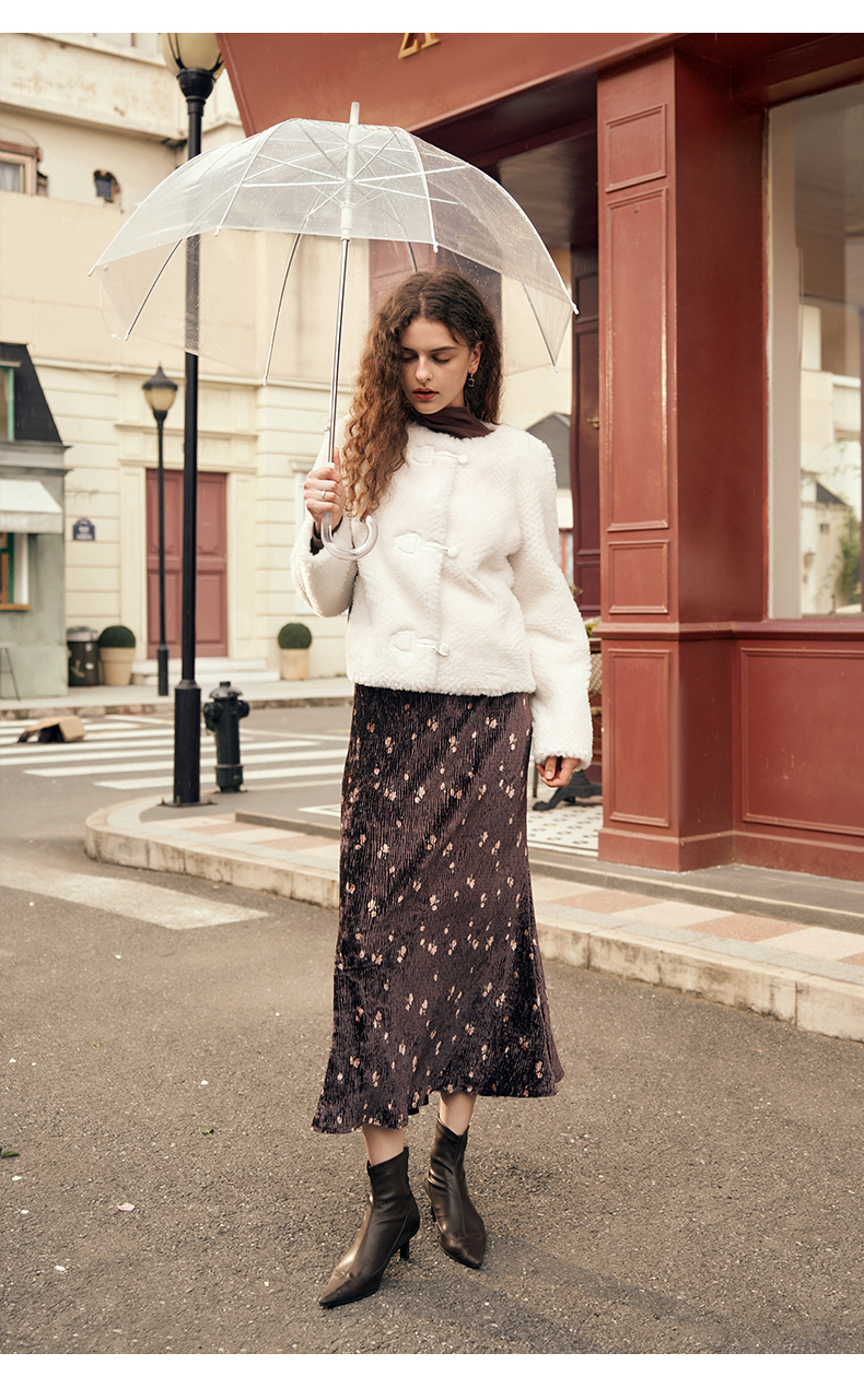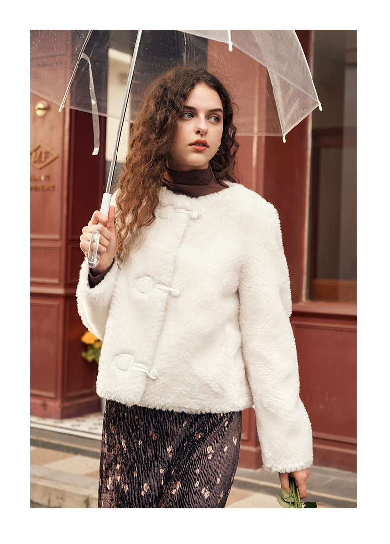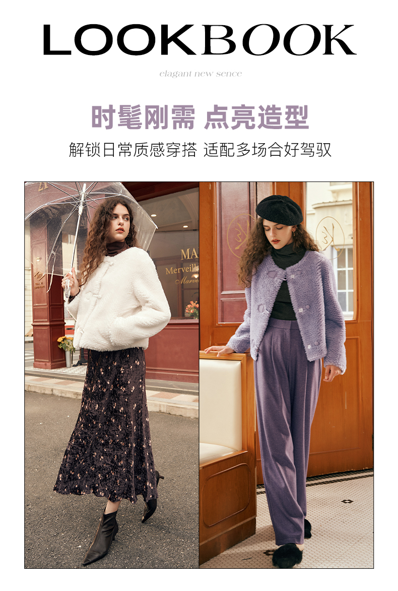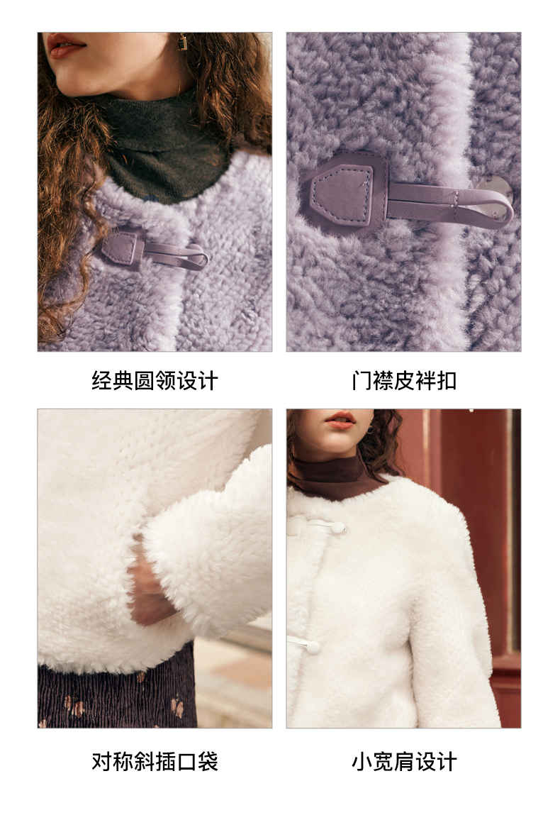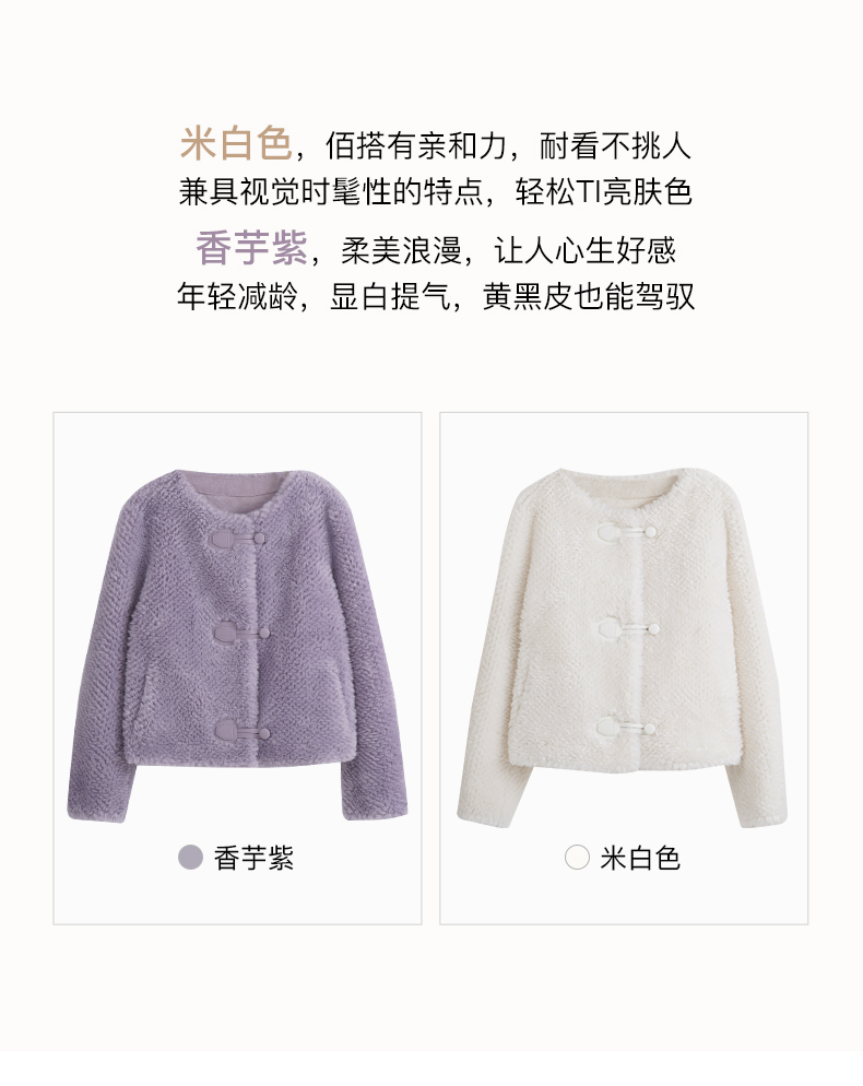 OLrain欧芮儿紫色皮草外套女春2025新款气质皮毛一体小香风上衣