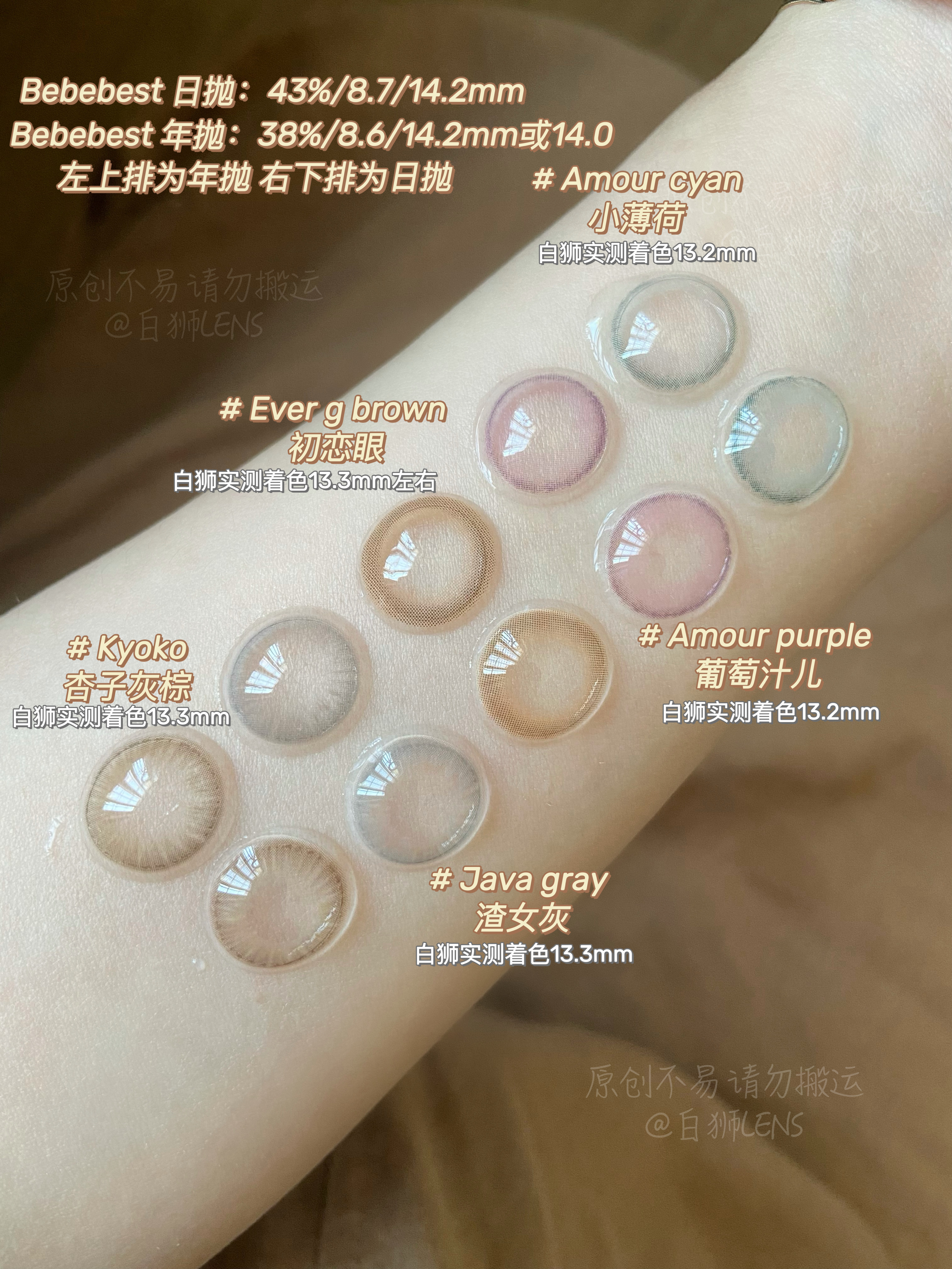 Bebebest旗下日抛合集 · 小薄荷/葡萄汁/初恋眼/杏子灰棕/渣女灰/小黑环/小棕环/Olivia琥珀珊瑚/SUSU · 一盒10片装 · 韩产日抛